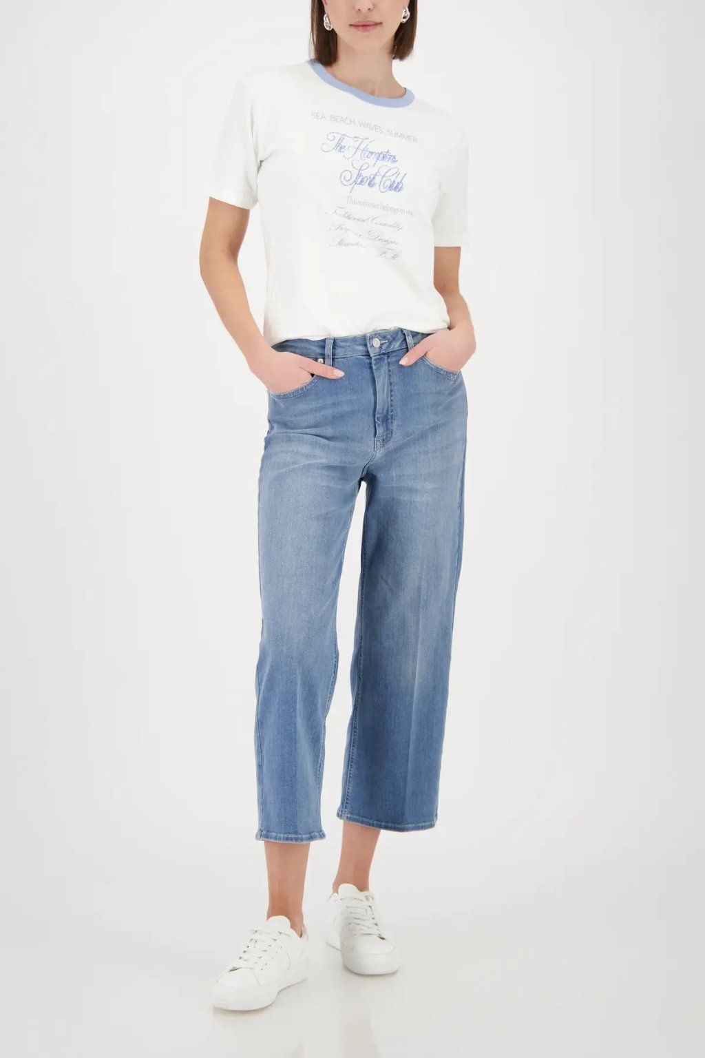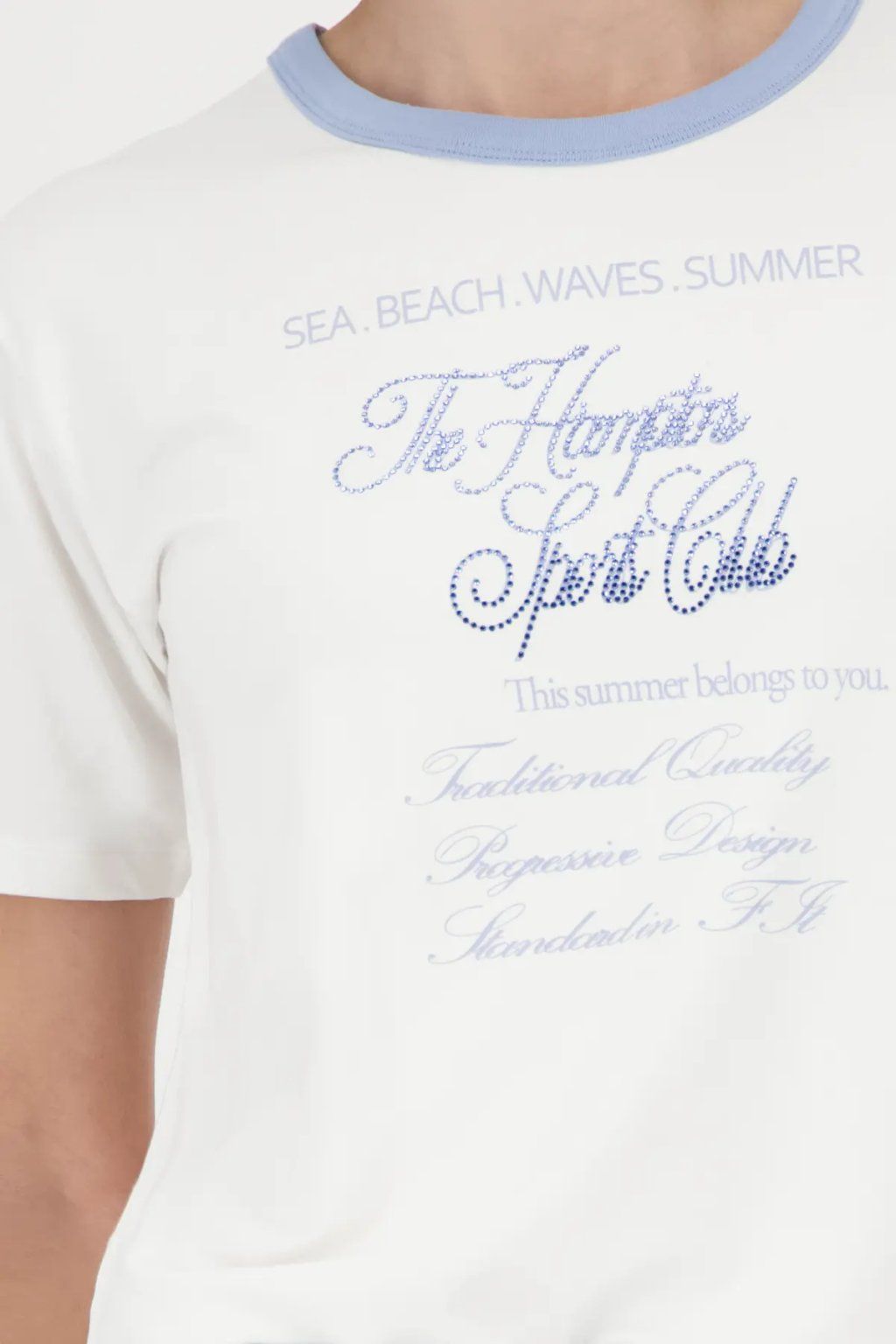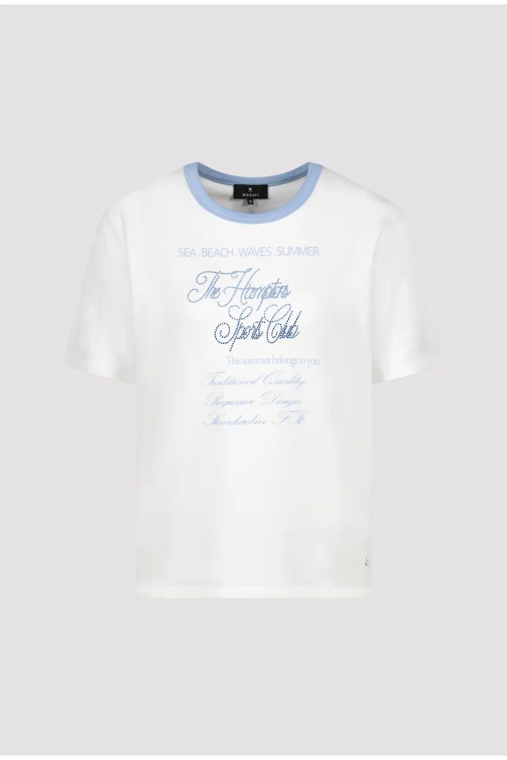 Dámske tričko v bielom prevedení pôsobí sviežo, jemne a veľmi žensky. Kontrastné svetlo modré lemovanie pri výstrihu a decentný nápis na prednej strane dodávajú modelu ľahký letný nádych a originálny detail. Klasický strih s krátkym rukávom zaisťuje pohodlné nosenie, zatiaľ čo univerzálna farebnosť umožňuje ľahké kombinovanie s džínsami, šortkami aj sukňou. Ideálny kúsok na voľný čas, mestské outfity aj pohodové letné dni.