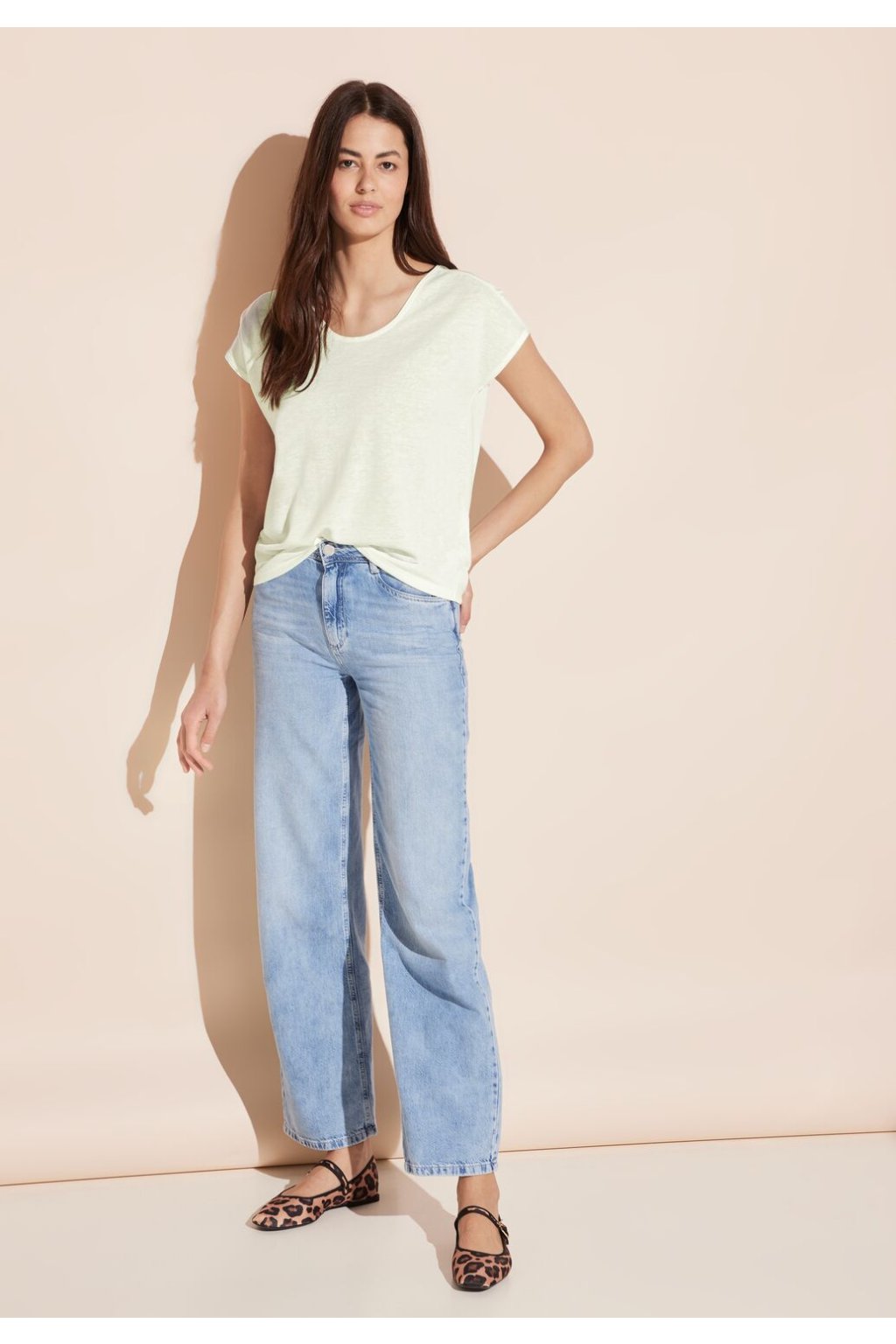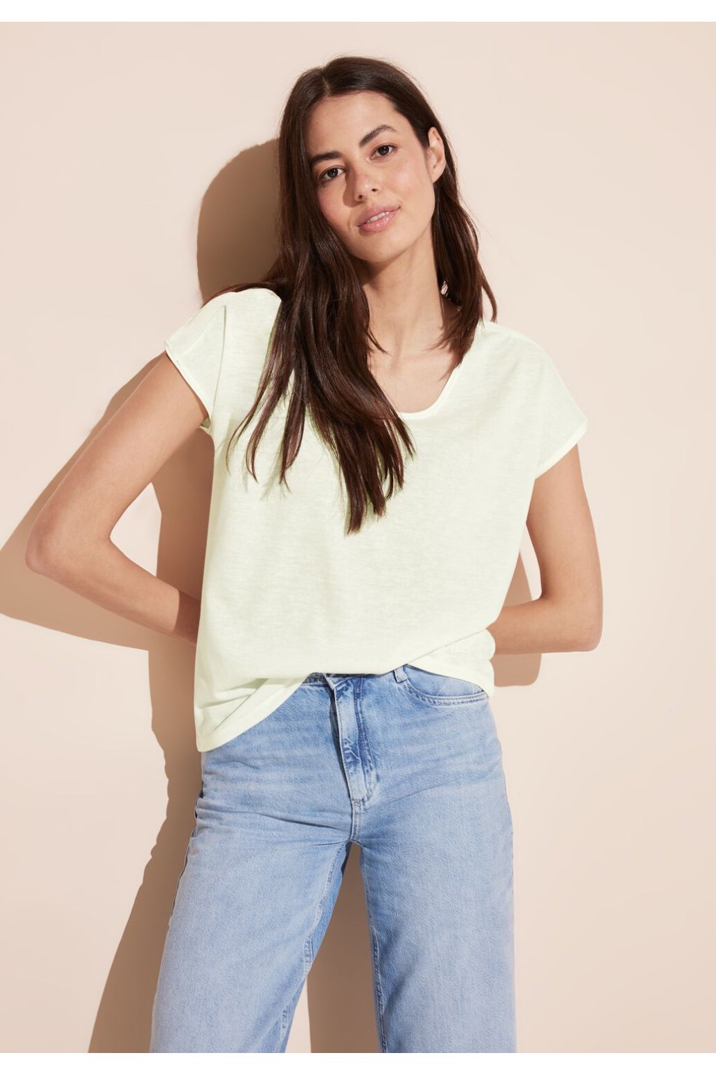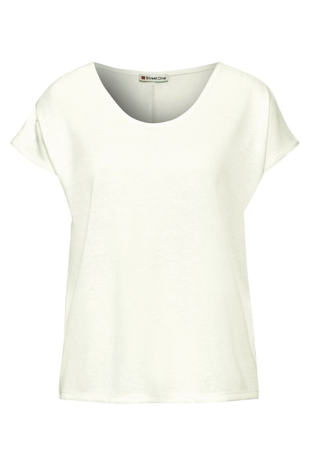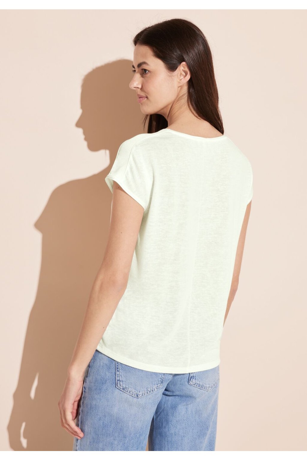 Dámske tričko z mix materiálu Street One kombinuje štýl a pohodlie na leto. So svojim zaobleným výstrihom do V a ozdobným ramenným prvkom ponúka modernú estetiku. Ľanový melanžový vzhľad mu dodáva ležérny nádych, zatiaľ čo krátke rukávy zaisťujú voľnosť pohybu.
