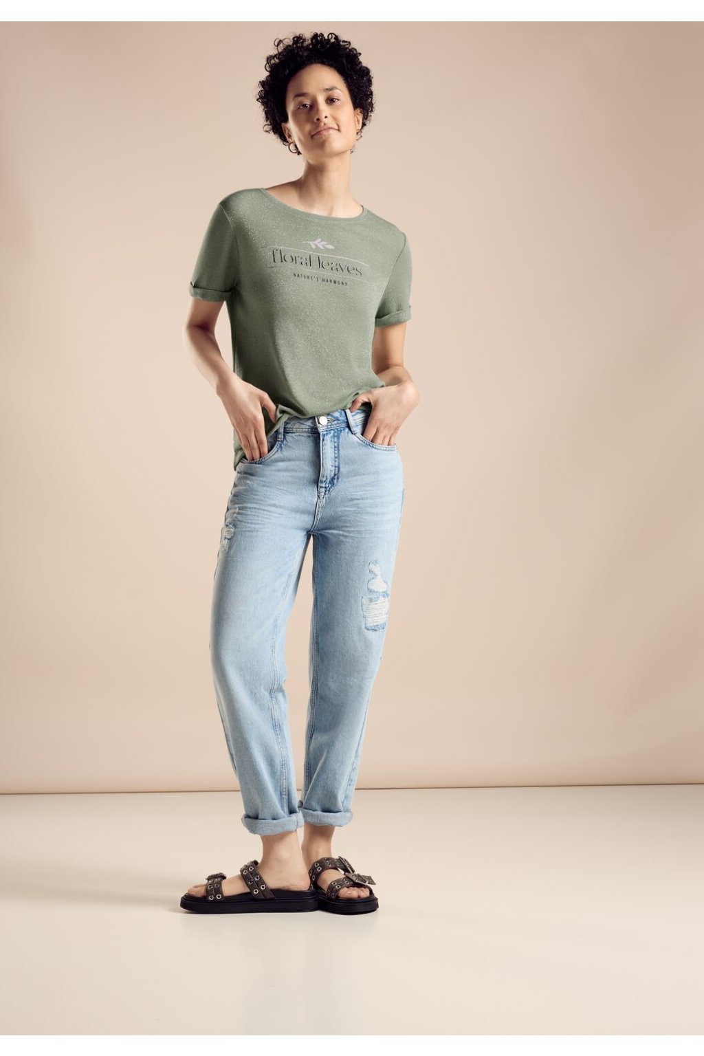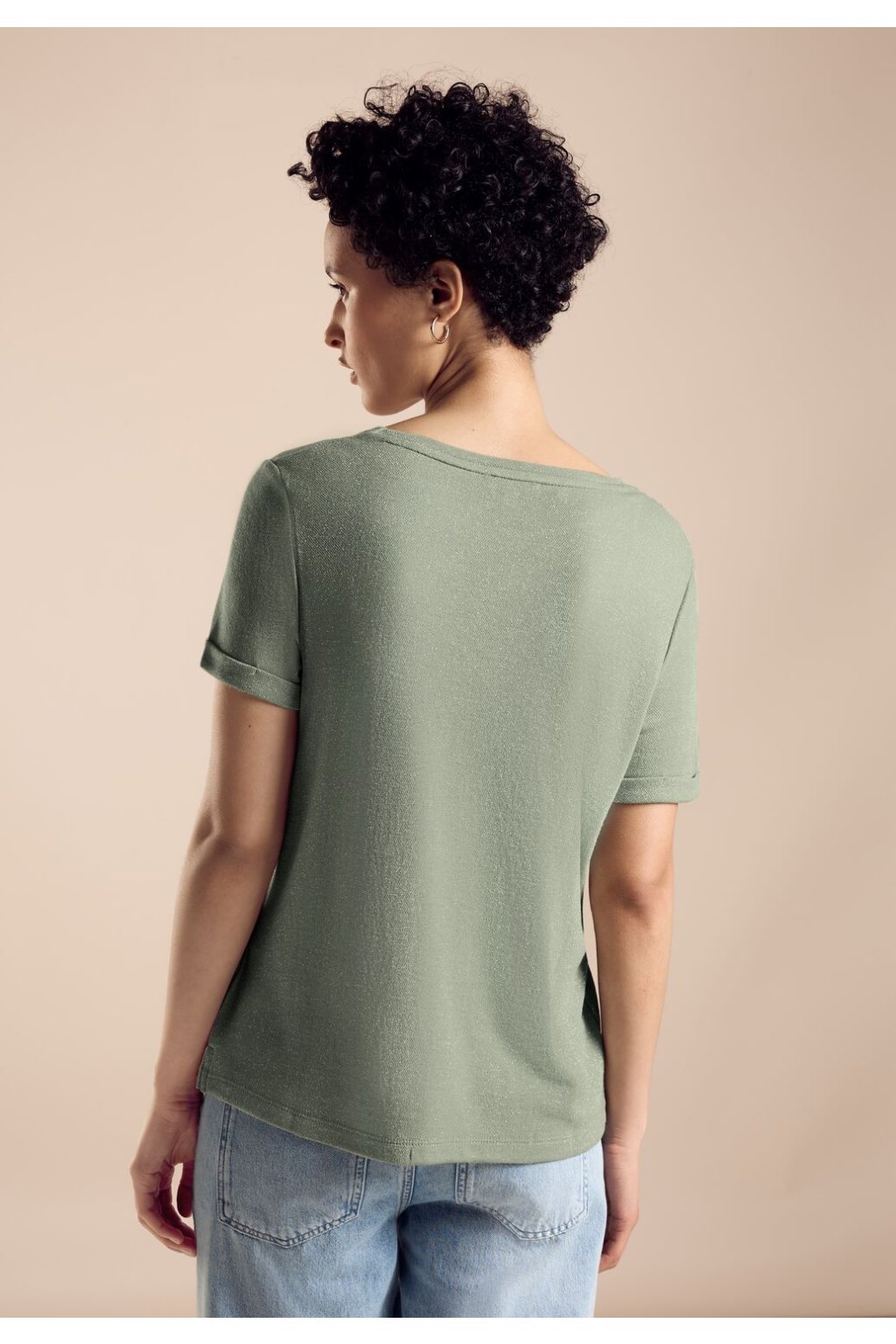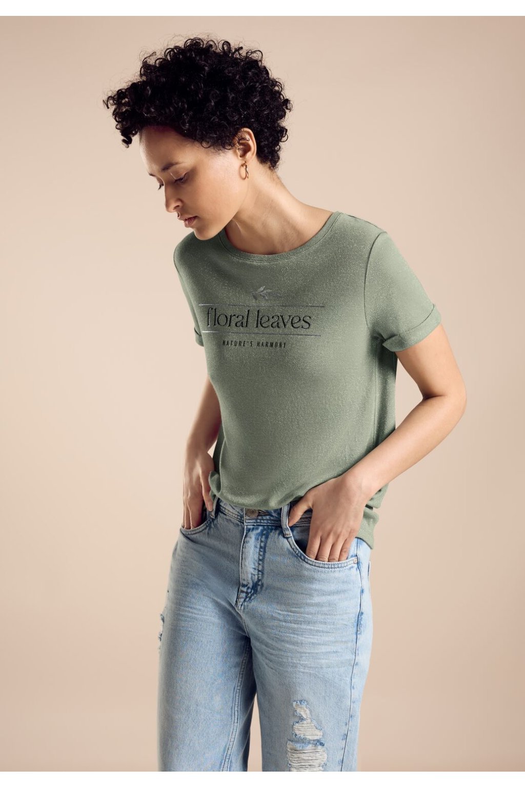 Dámske tričko Street One je štýlová košeľa s krátkym rukávom, klasickým výstrihom a atraktívnym trblietavým efektom. Predná potlač s nápisom dodáva košeli trendy a upúta pozornosť. Táto košeľa je ideálna pre neformálny vzhľad a ponúka pohodlie a štýl v rovnakej miere.