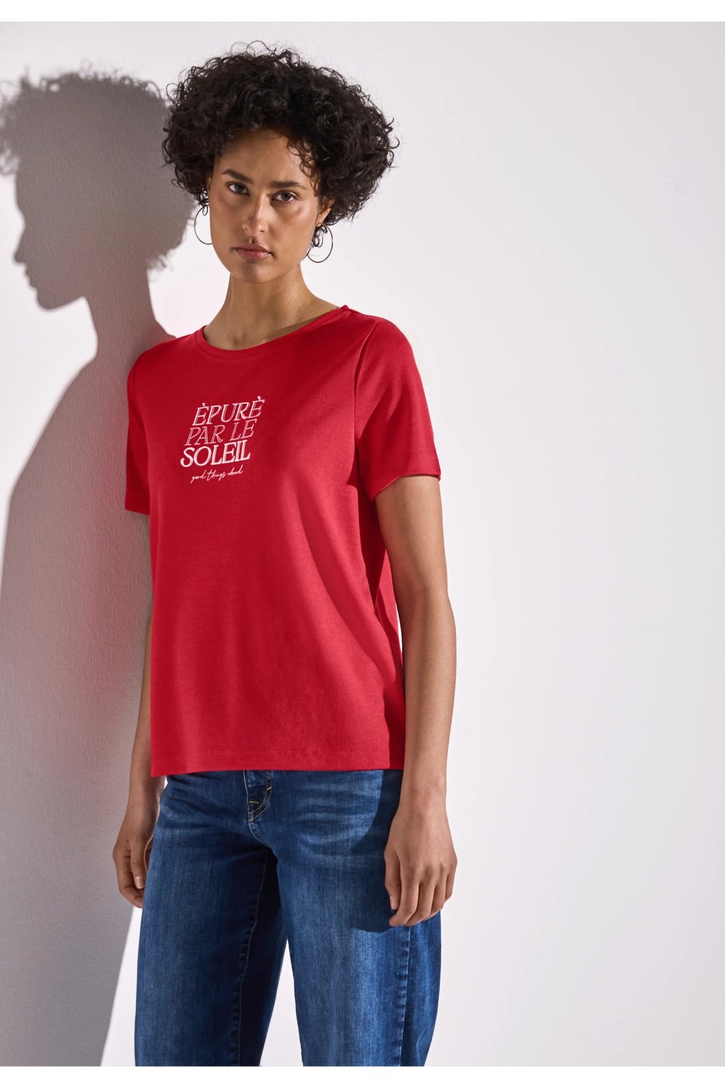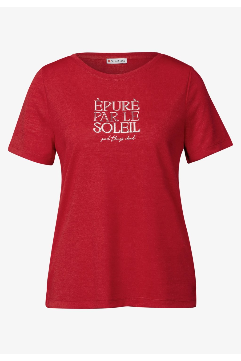 Toto dámske tričko s krátkym rukávom od Street One zaujme kresbou s nápisom. Okrúhly výstrih a okrúhly lem mu dodávajú ležérny nádych. Príjemná zmes materiálov zaisťuje príjemné nosenie.