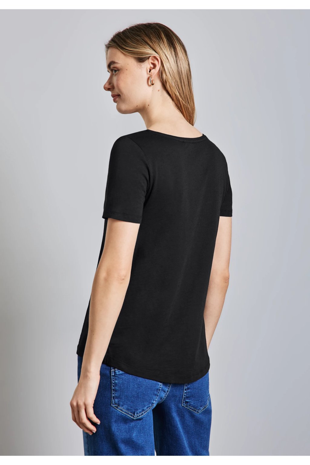 Základné, jednofarebné tričko v štýle Gerda od Street One pre ženy je všestranným nevyhnutným kúskom vášho šatníka. Tričko je možné kombinovať rôznymi spôsobmi a jeho voľný strih z neho robí perfektnú voľbu pre každý deň. Krátke rukávy a okrúhly výstrih dokonale dotvárajú ležérny vzhľad tohto dámskeho trička.