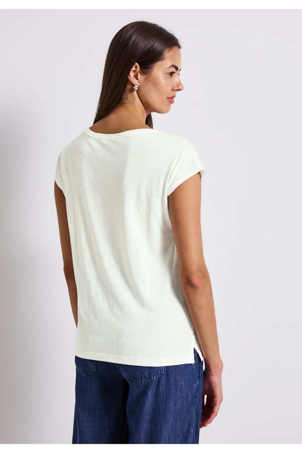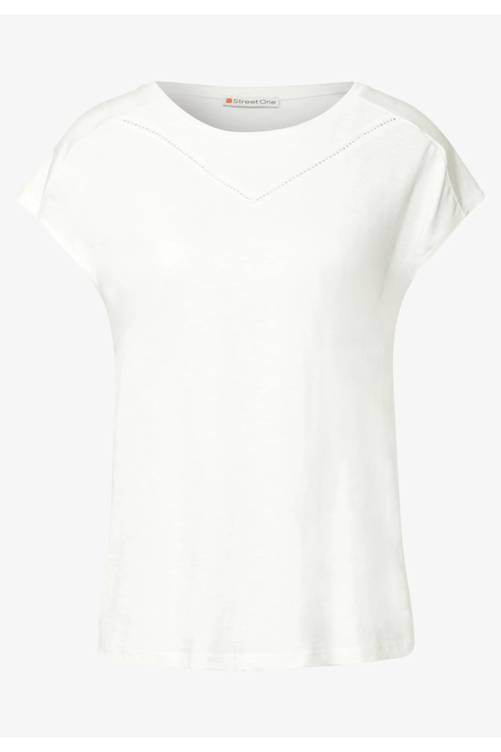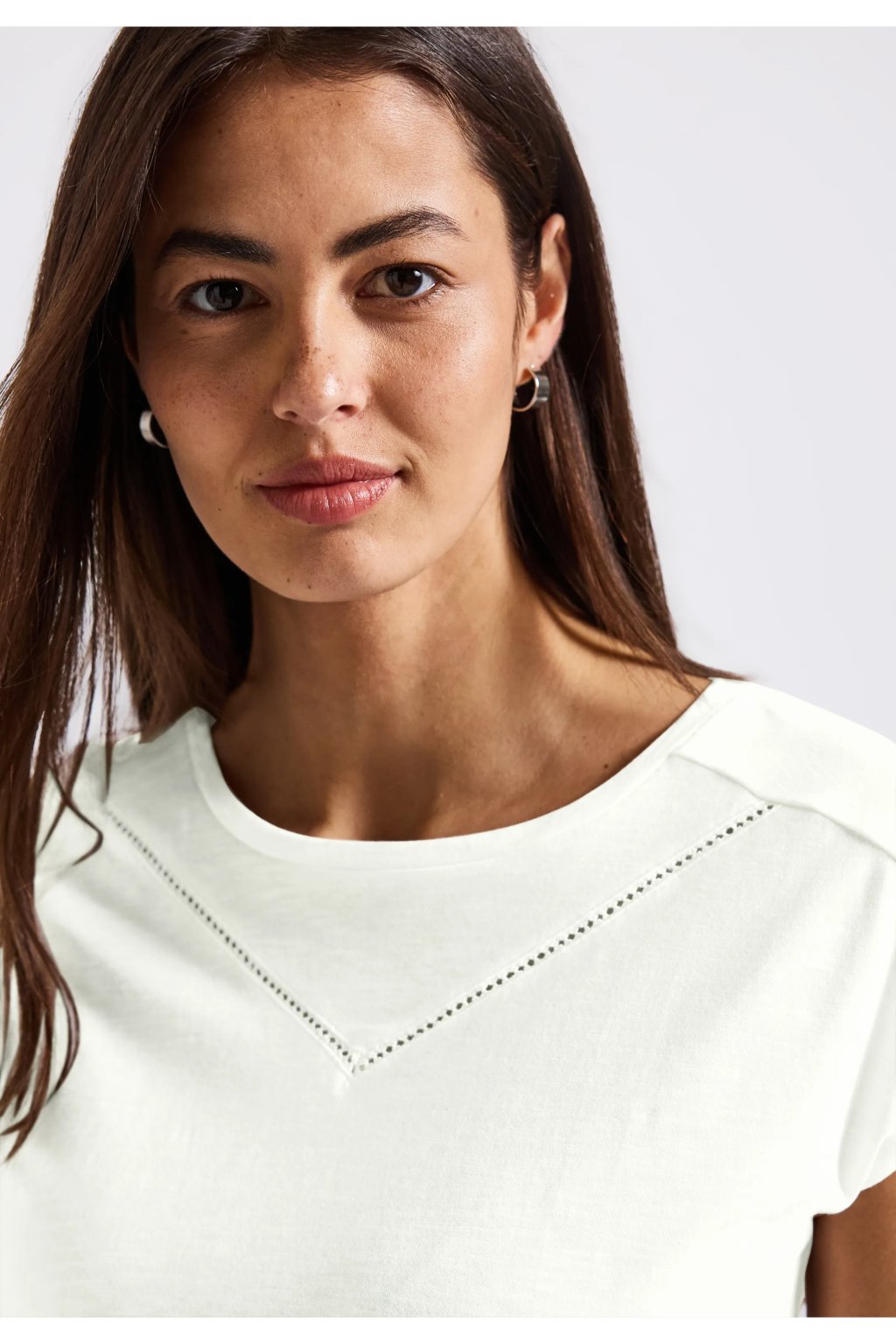 Toto dámske tričko od Street One zaujme dekoratívnymi prvkami a mäkkým materiálom. Lodičkový výstrih a spustené ramená mu dodávajú moderný nádych. Zmes bavlny a modalu zaisťuje vysokú úroveň pohodlia, vďaka čomu je toto tričko ideálne pre váš budúci letný outfit.
