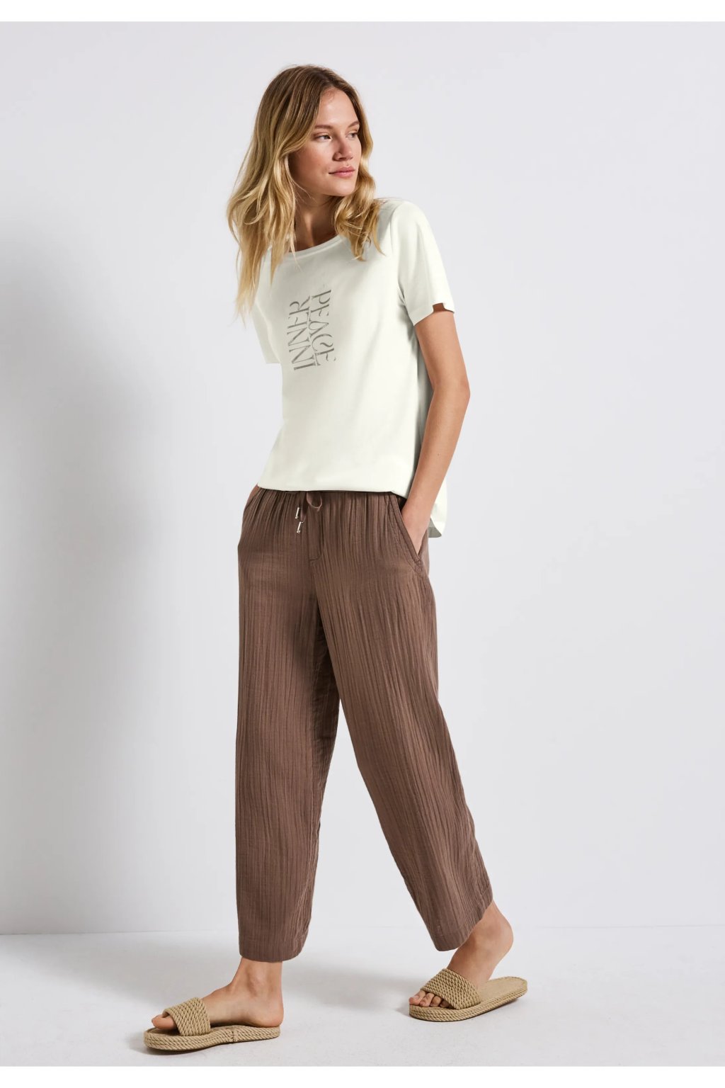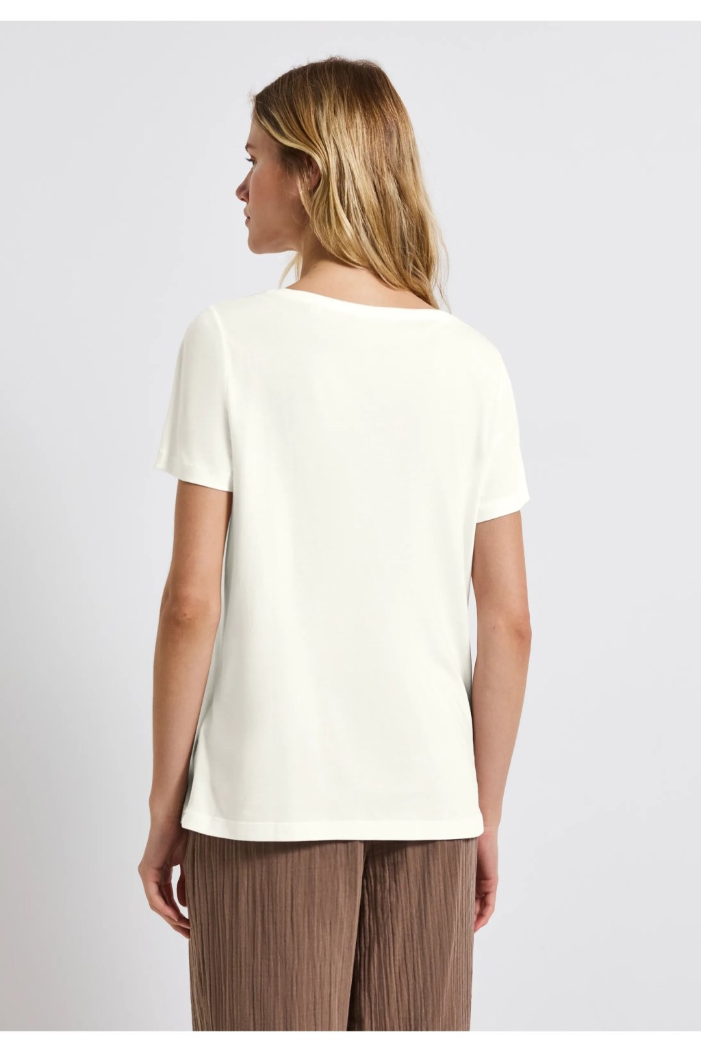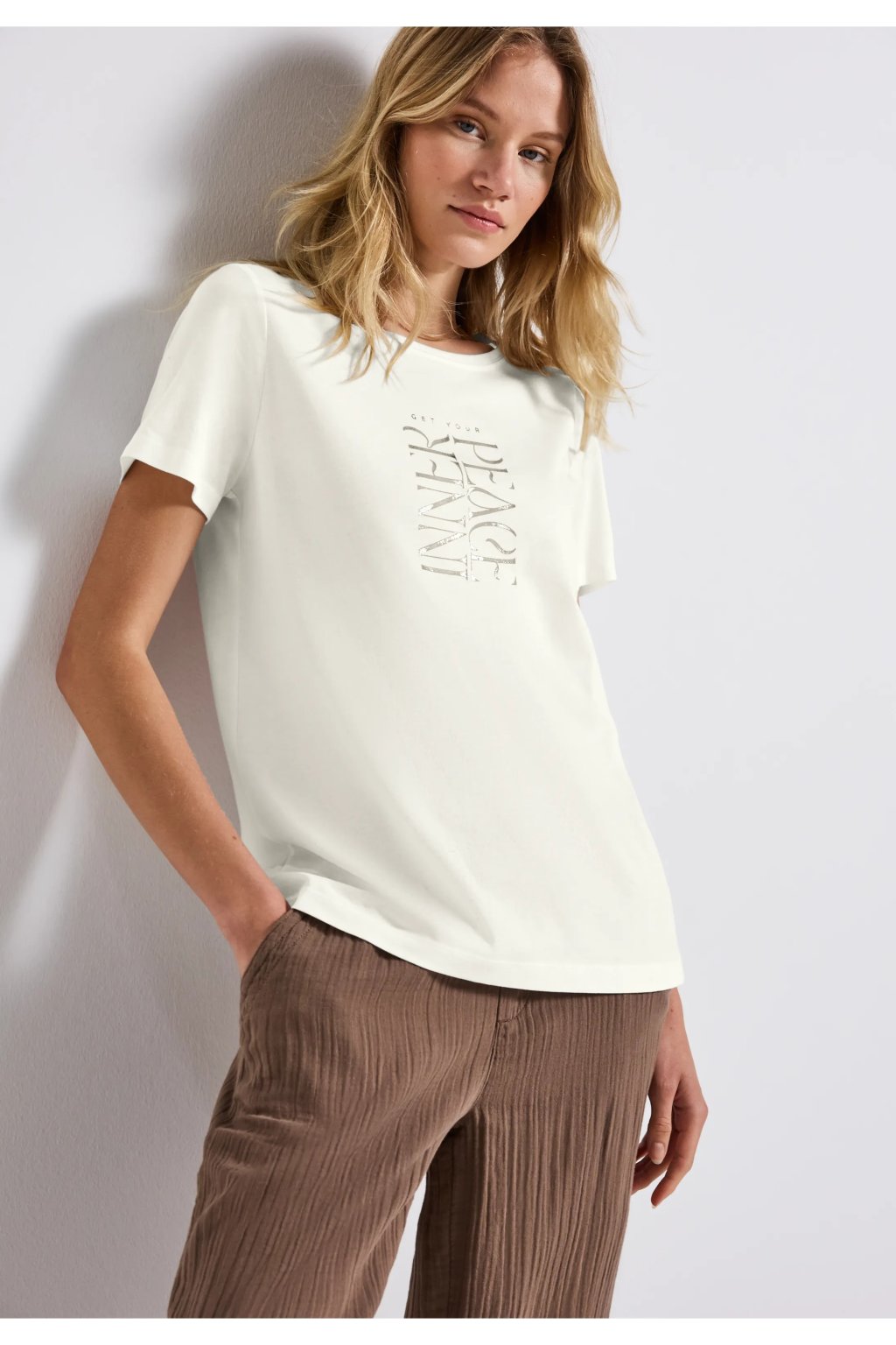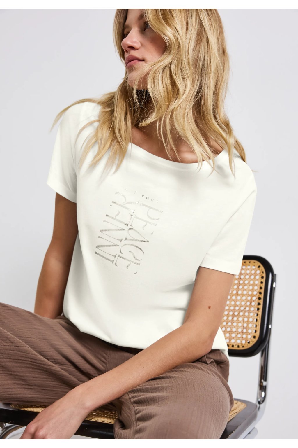 Toto dámske tričko od Street One kombinuje moderný text s ležérnym designom. Okrúhly výstrih a spustené ramená vytvárajú letný vzhľad, zatiaľ čo zmes bavlny a modalu je príjemne hebká na dotyk. Štýlový spoločník na každodenné nosenie.