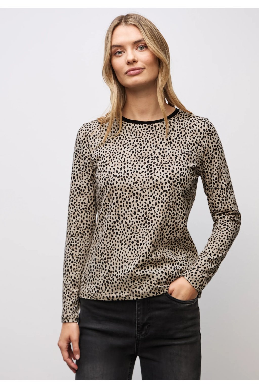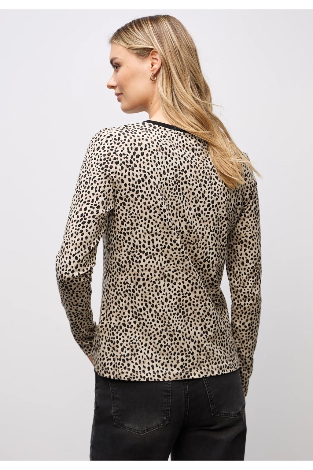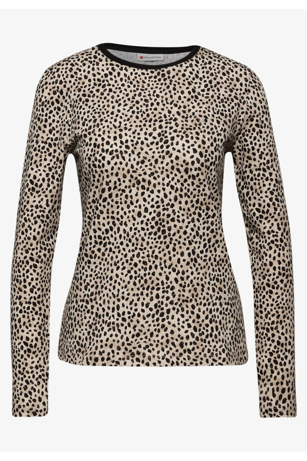 Toto dámske džersejové tričko od Street One s leopardím potlačou a kontrastným okrúhlym výstrihom vnesie do vášho každodenného vzhľadu módnu sviežosť. Mäkká džersejová tkanina je príjemná na dotyk, vďaka čomu je toto tričko pohodlným štýlovým partnerom. Ideálna k trendy ležérnym outfitom s výraznou potlačou.