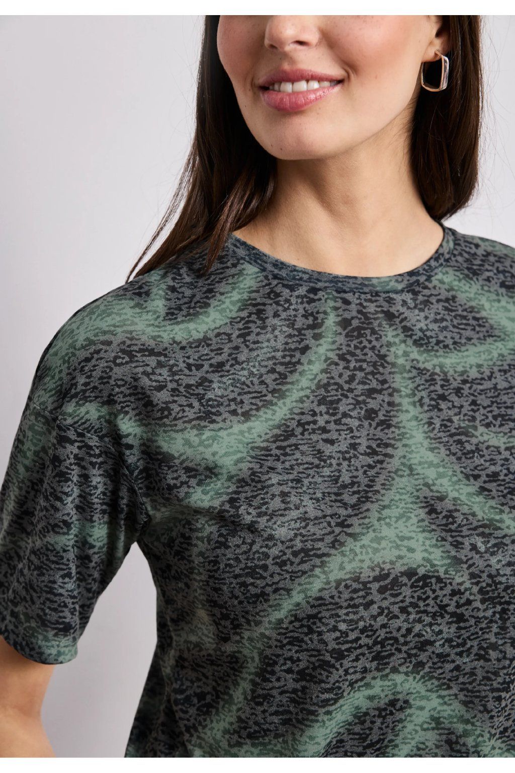 Dámske tričko s originálnym zeleno-čiernym vzorom je štýlovým kúskom, ktorý oživí každý každodenný outfit. Pohodlný strih s krátkym rukávom a okrúhlym výstrihom zaisťuje príjemné nosenie, zatiaľ čo netradičná potlač dodáva modelu moderný a ľahko výrazný vzhľad. Tričko sa skvele hodí k džínsom, nohaviciam aj sukni a je ideálnou voľbou pre ženy, ktoré chcú spojiť pohodlie s nápaditým štýlom.