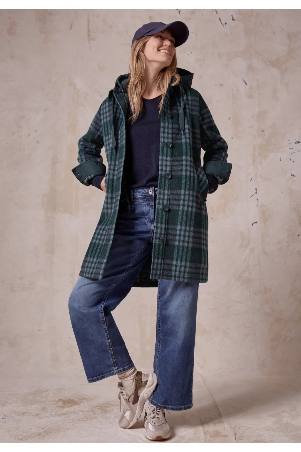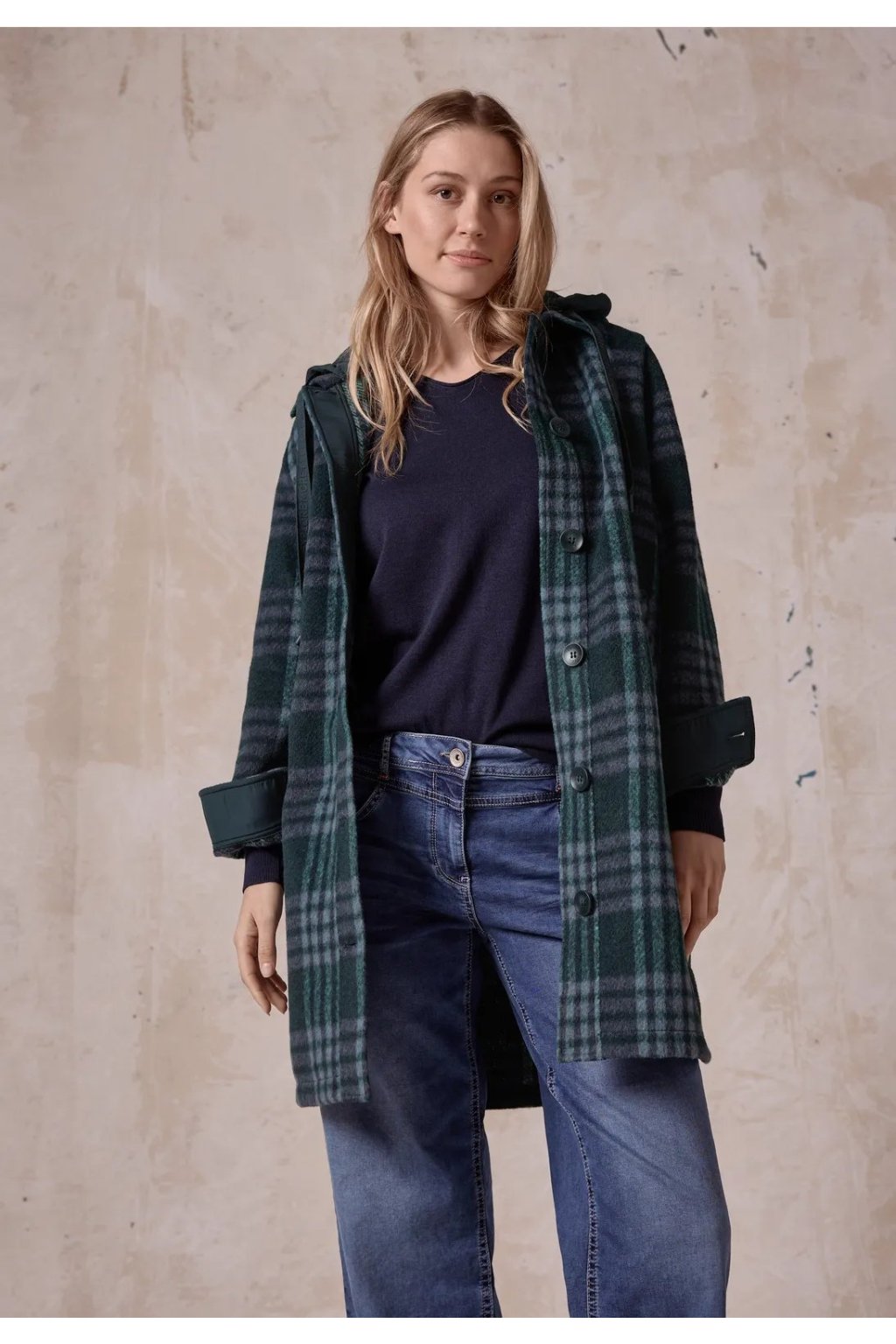 Dlhý kabát od CECIL je príjemným spoločníkom na chladné dni. Dámsky kabát vlneného vzhľadu zaujme košeľovým golierom s gombíkovou légou a odnímateľnou kapucňou so sťahovacou šnúrkou. Bočné vrecká a bočné rázporky poskytujú ďalšie pohodlie.