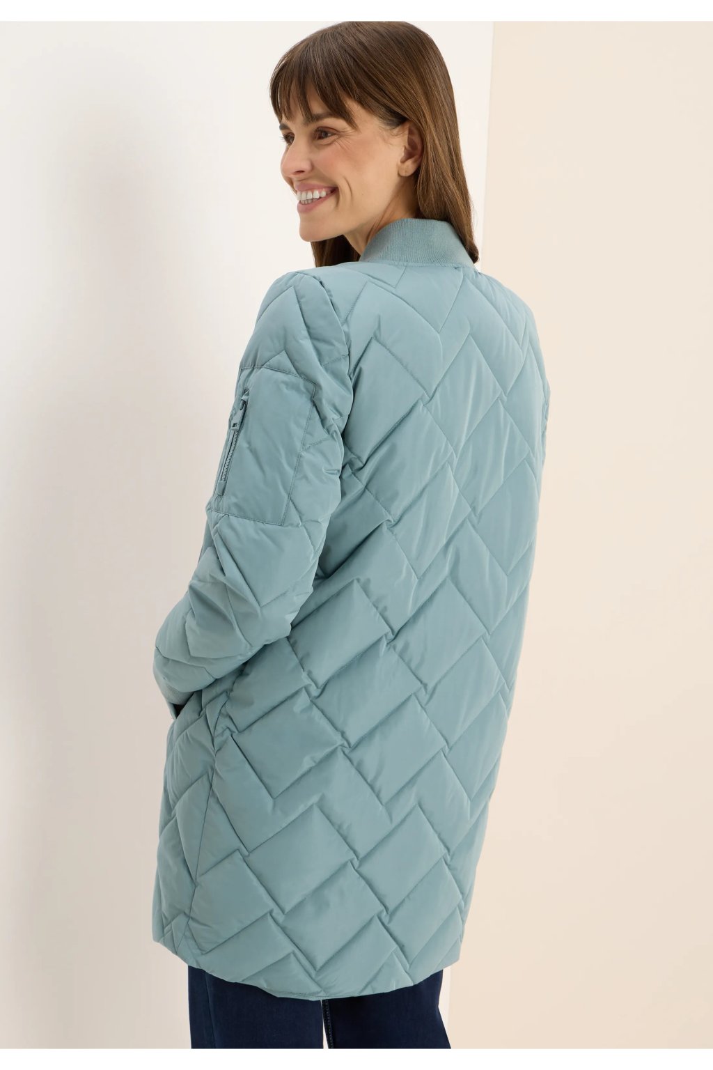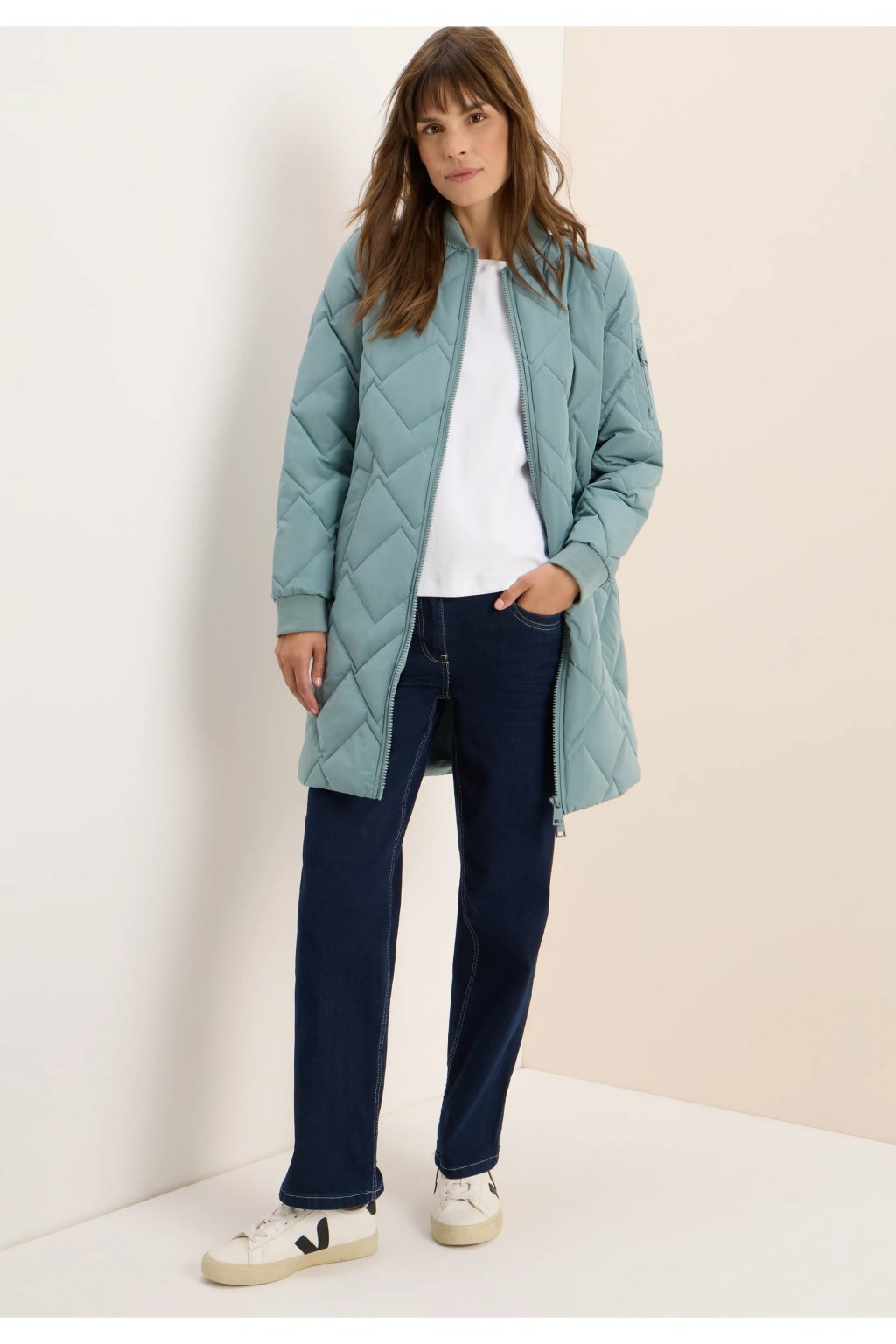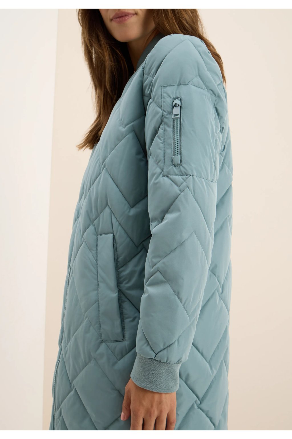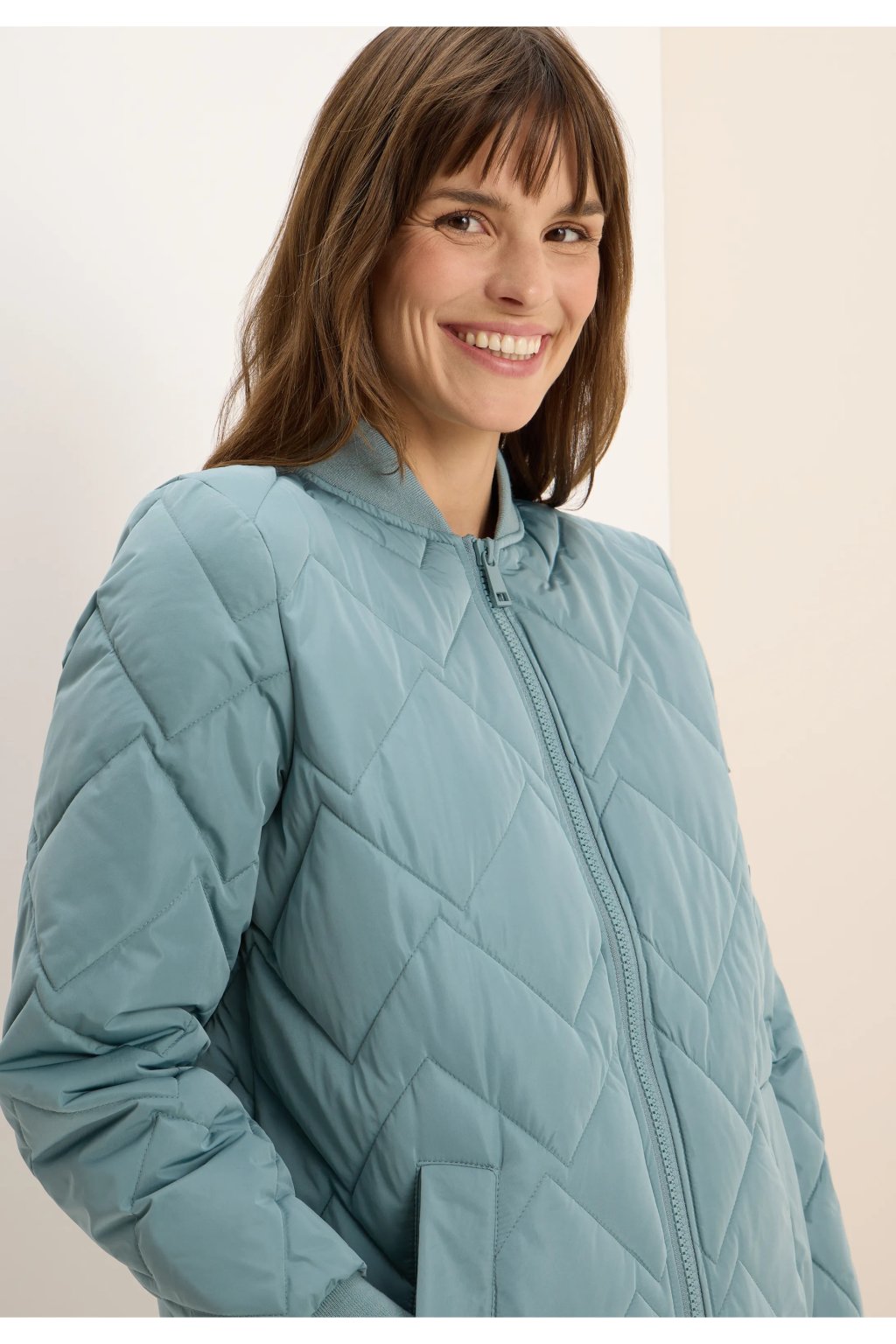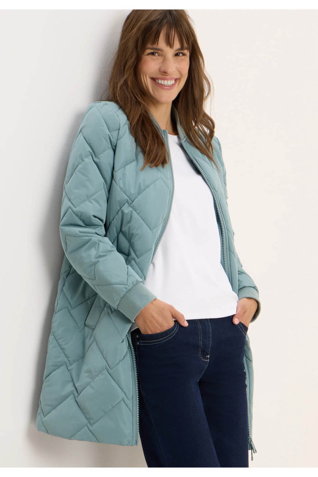 Tento dlhý prešívaný kabát od značky CECIL pre ženy zaujme svojou módnou siluetou a pohodlnou ľahkosťou. Rebrovaný golier a manžety a malé vrecko na zips na rukáve dodávajú kabátu športový nádych. Prepracované prešívanie a obojsmerný zips zaisťujú funkčnosť a štýl v jednom.