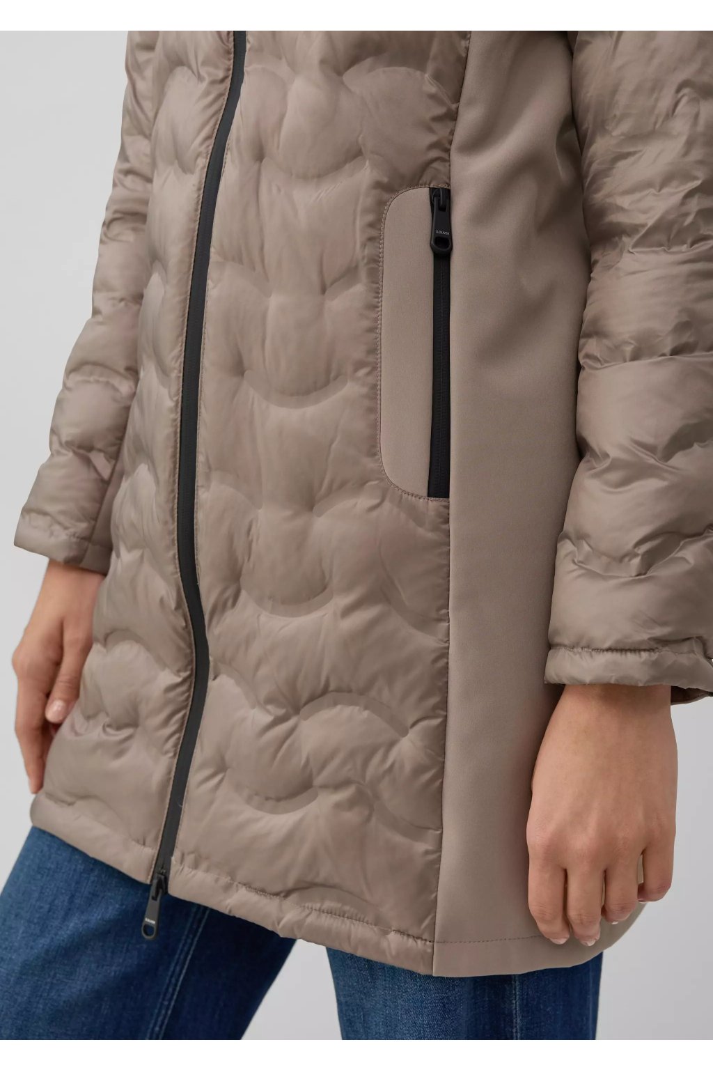 Štýlová outdoorová bunda so slim fit strihom, ktorá spája funkčnosť a moderný vzhľad. Vyrobená z kvalitnej tkanej softshellovej látky s ľahkým polstrovaním pre teplo a pohodlie aj v chladnejšom počasí. Má dvojcestný zips a stojačik, ktorý chráni pred vetrom. Odopínacia kapucňa s nastaviteľnou šnúrkou umožní prispôsobiť bundu aktuálnym podmienkam. Praktické vnútorné vrecká a vrecká na zips uschovajú všetko potrebné. Vďaka ľahkému prevedeniu a embosovanému povrchu sa skvele hodí na outdoorové aktivity aj každodenné nosenie.