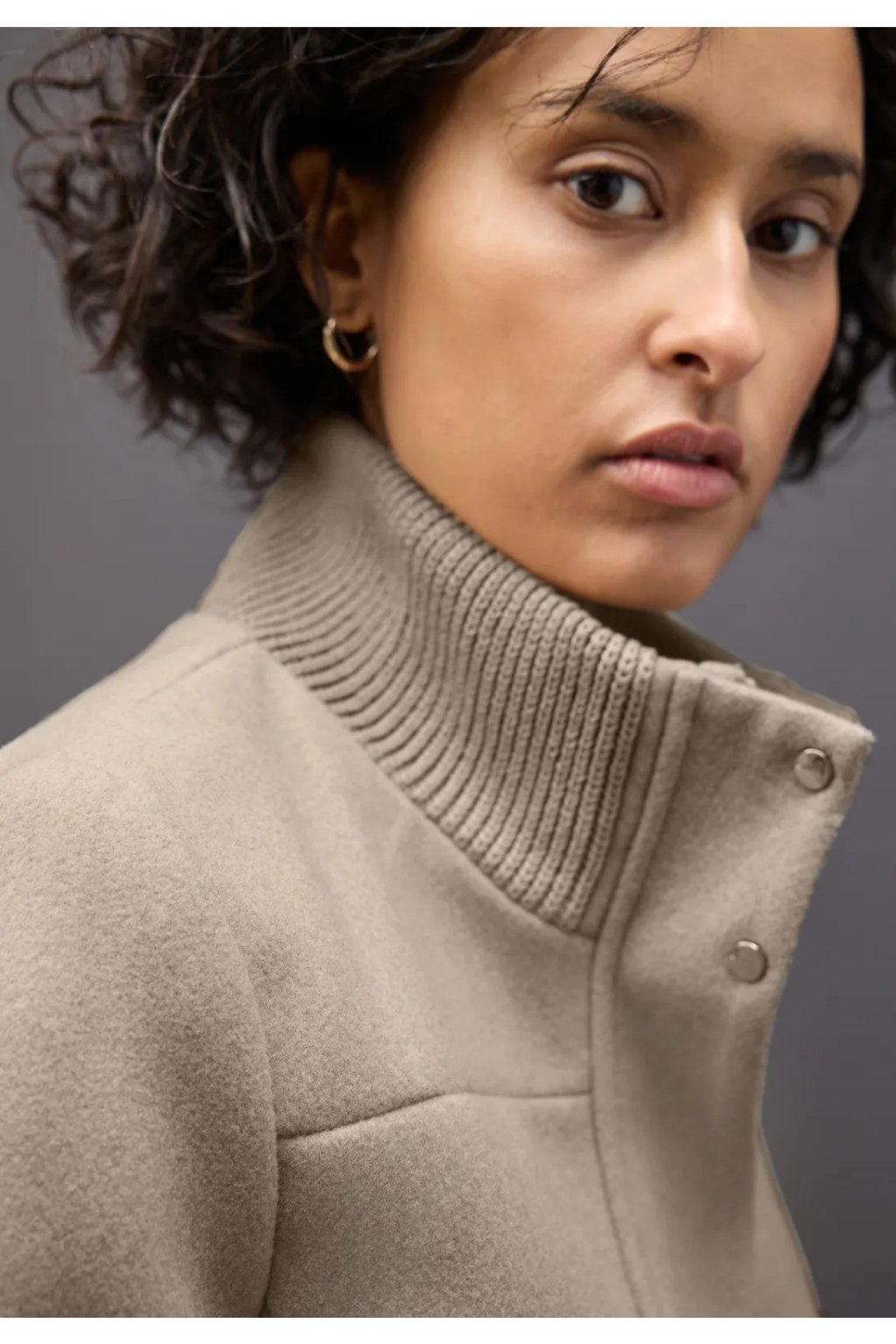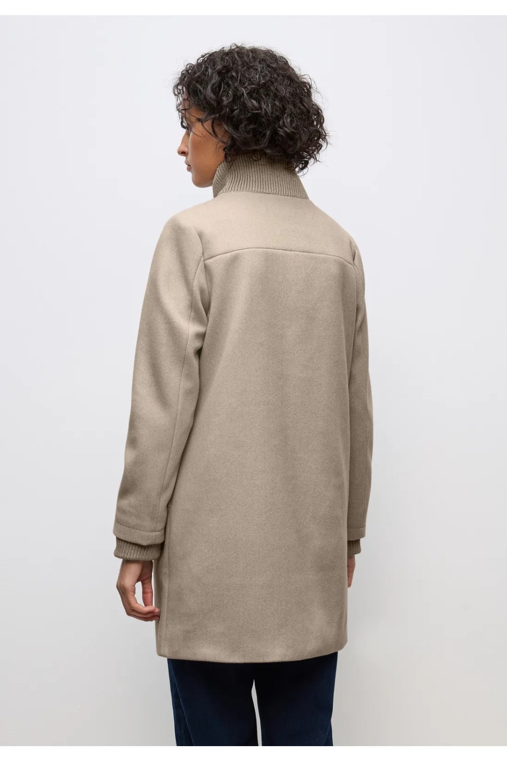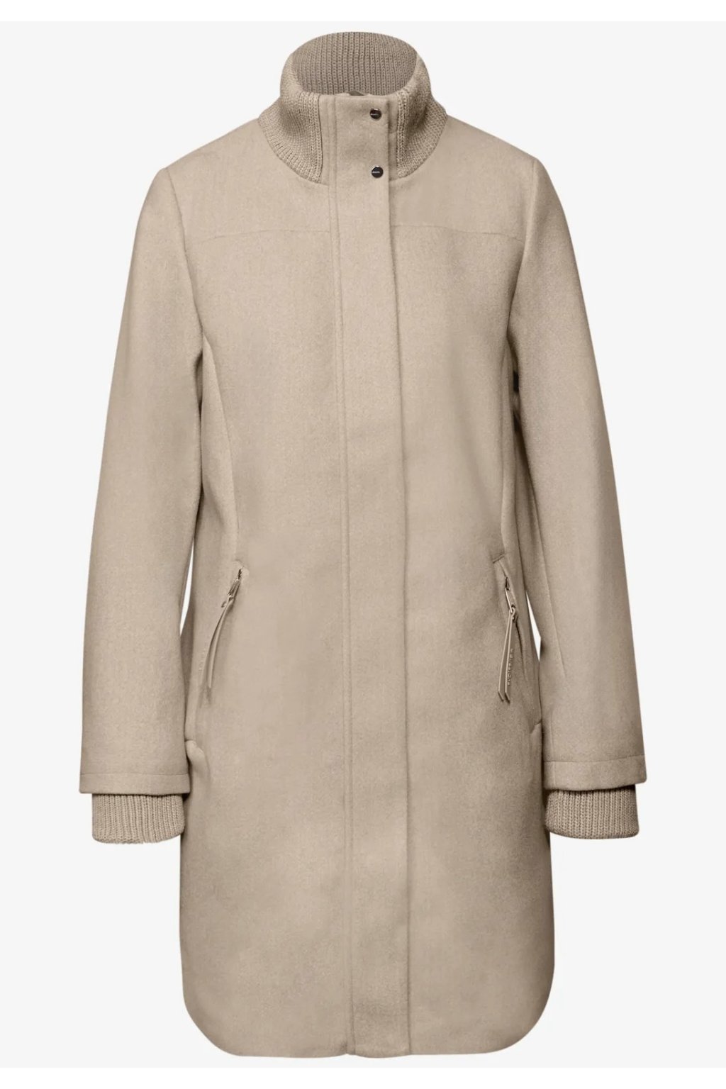 Tento dámsky kabát od Street One kombinuje klasickú eleganciu s modernými detailmi. Pletené prvky na stojačiku dodávajú kabátu štýlový nádych, zatiaľ čo materiál s vlneným vzhľadom mu dodáva vysoko kvalitný vzhľad. Bočné vrecká na zips a zapínanie na gombíky po celej dĺžke z neho robia perfektného spoločníka pre prechodné ročné obdobia.