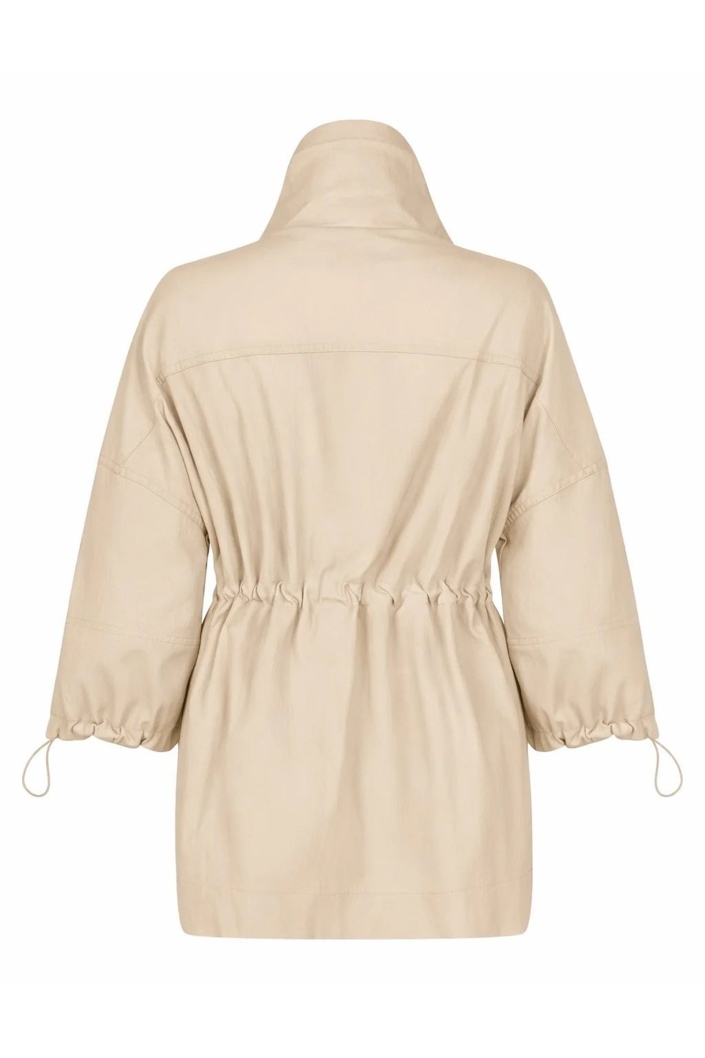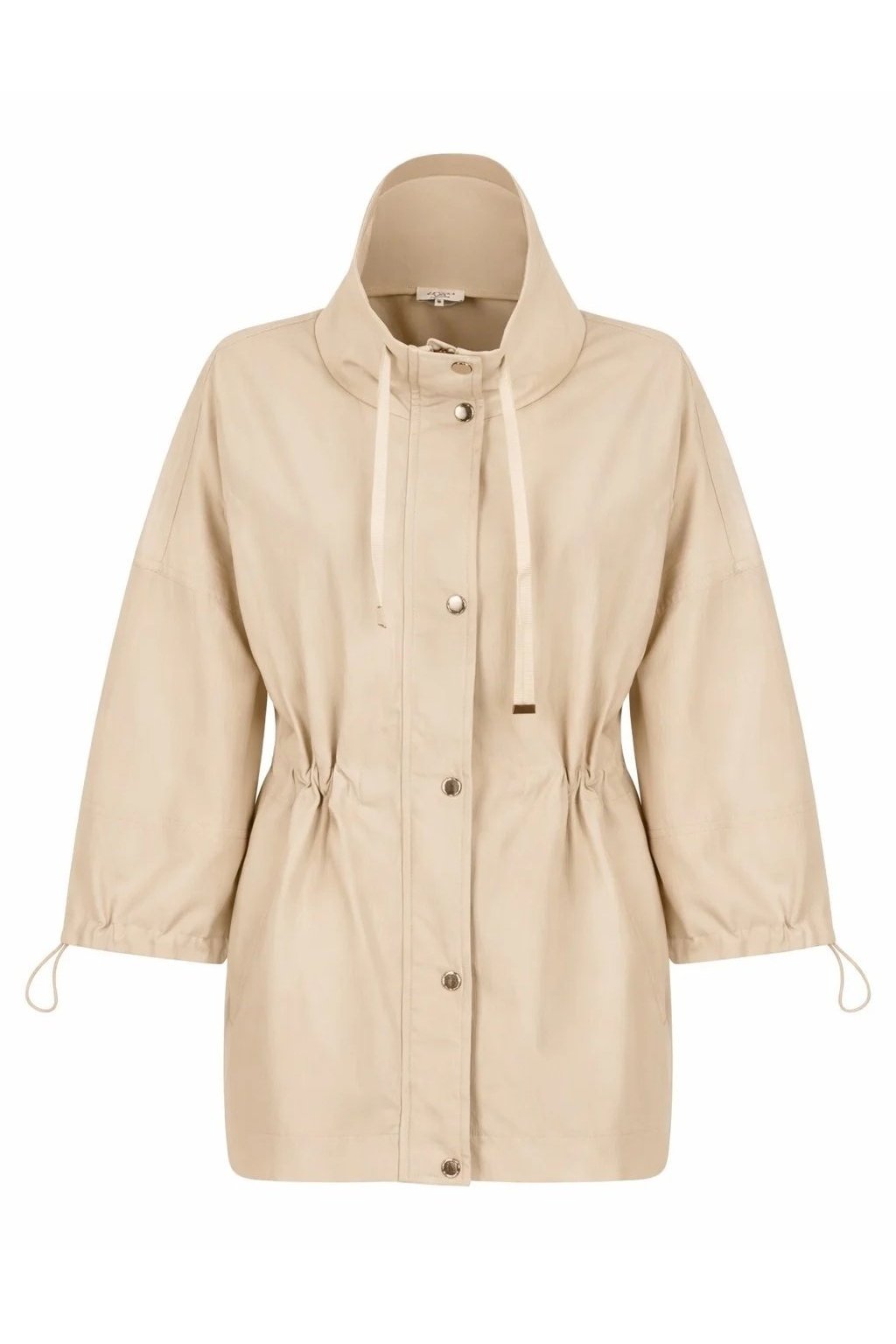 Dámsky kabátik v elegantnej béžovej farbe zaujme svojim moderným a pohodlným strihom. Model má pri krku praktický stojačik a zapínanie na zips, ktorý je prekrytý légou s patentmi pre čistý a upravený vzhľad. Štýlové 3/4 prepadnuté široké rukávy dodávajú kabátiku ležérny nádych, pričom ich konce je možné ľahko stiahnuť pomocou gumičiek. Nechýbajú ani dve postranné priehmatové vrecká pre maximálnu praktickosť. Voľný strih zaisťuje komfort pri nosení a ľahké vrstvenie, takže je kabátik ideálnou voľbou pre každodenné outfity.