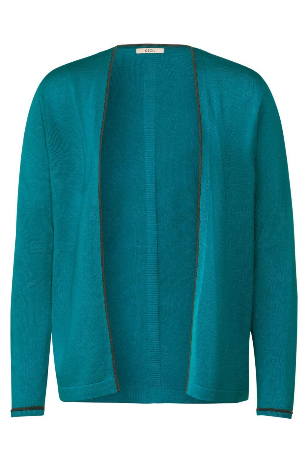Dámsky kardigan CECIL bez zapínania zaujme kontrastnými detailmi a pleteným vzorom na chrbte. Jedná sa o všestrannú univerzálku, ktorú je možné ľahko a rýchlo kombinovať s akýmkoľvek outfitom. Bez ohľadu na to, či sveter nosíte cez top, šaty alebo blúzku, dodá vášmu vzhľadu zvláštny nádych.