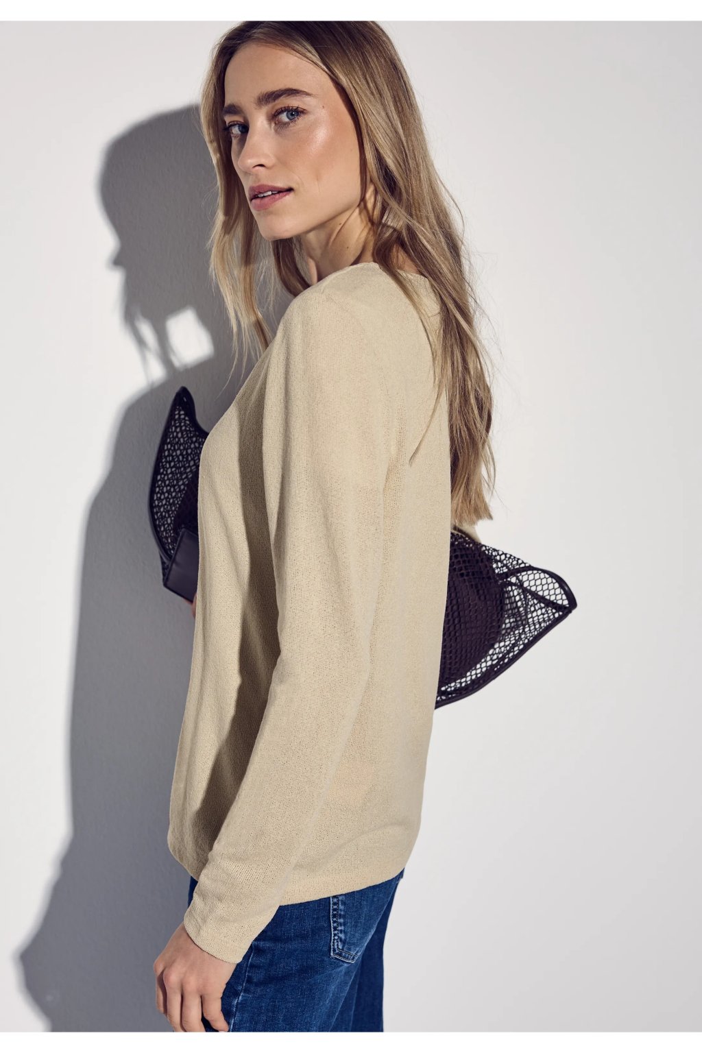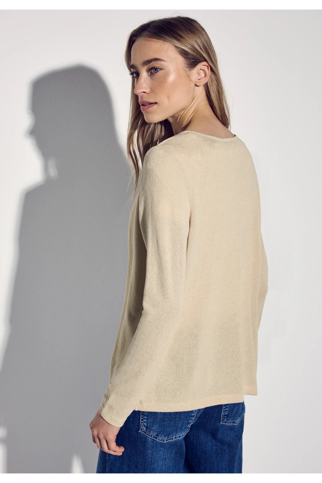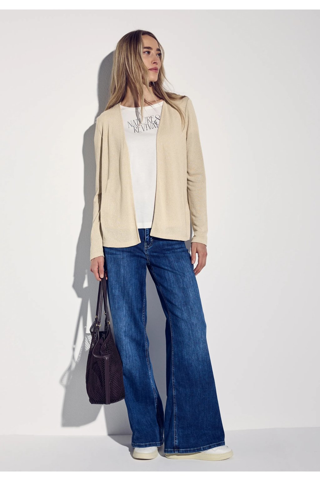 Dámsky kardigan Street One s úpletovým vzhľadom Nette má voľný strih a je vyrobený z mäkkej zmesi viskózy pre útulný pocit. Dlhé rukávy z neho robia príjemného spoločníka do chladných dní.