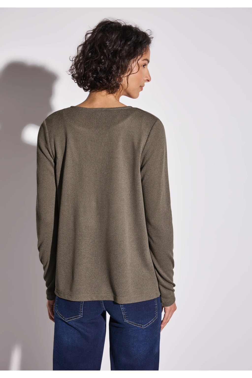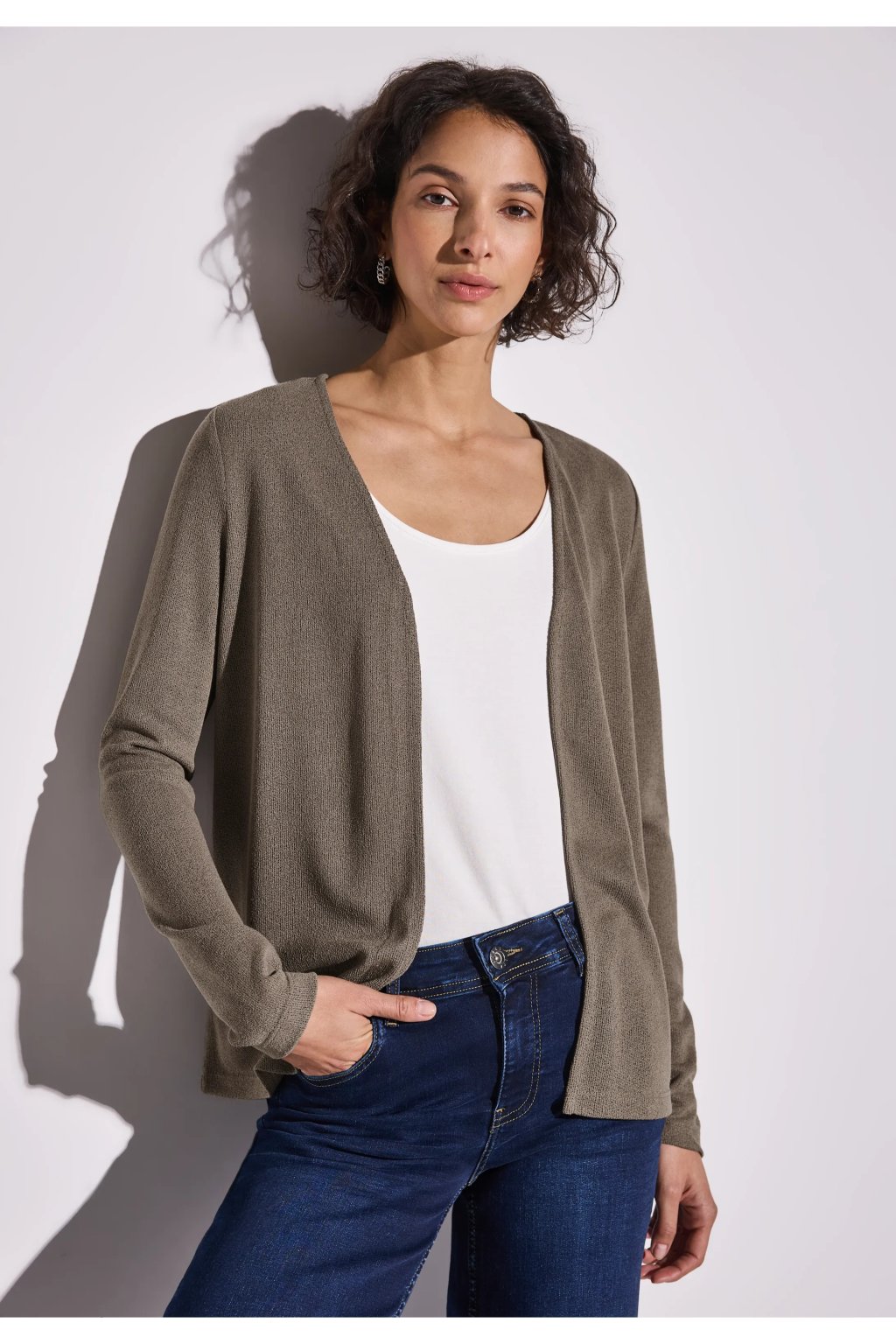 Dámsky kardigan Street One s úpletovým vzhľadom Nette má voľný strih a je vyrobený z mäkkej zmesi viskózy pre útulný pocit. Dlhé rukávy z neho robia príjemného spoločníka do chladných dní.