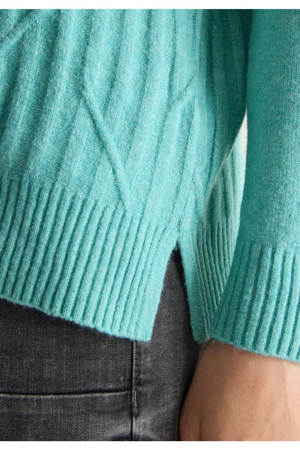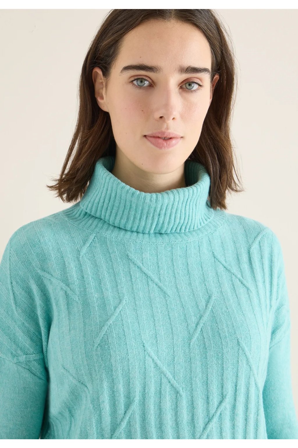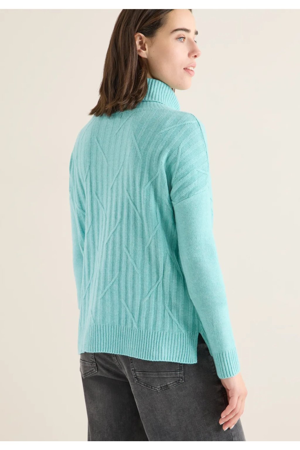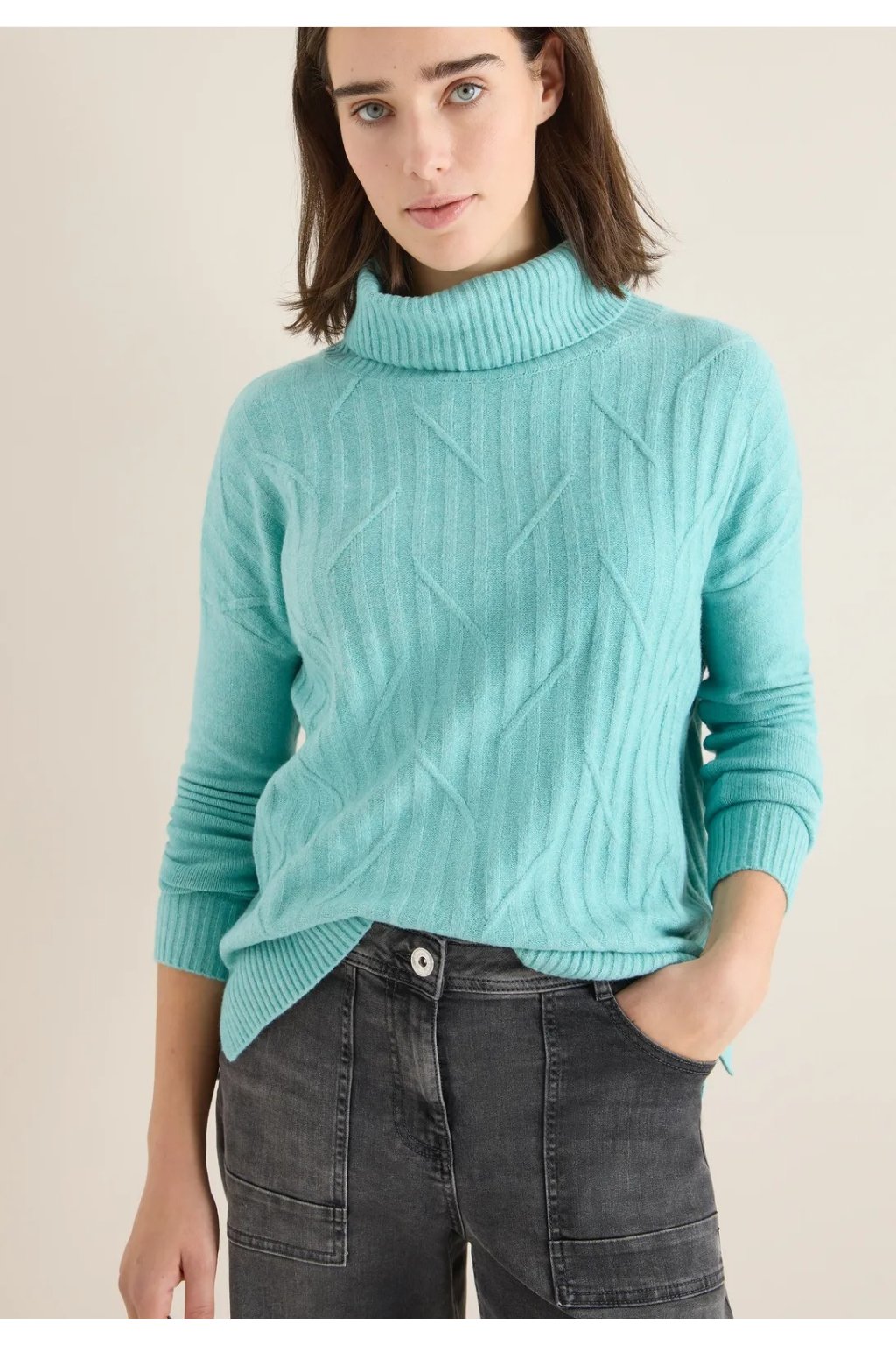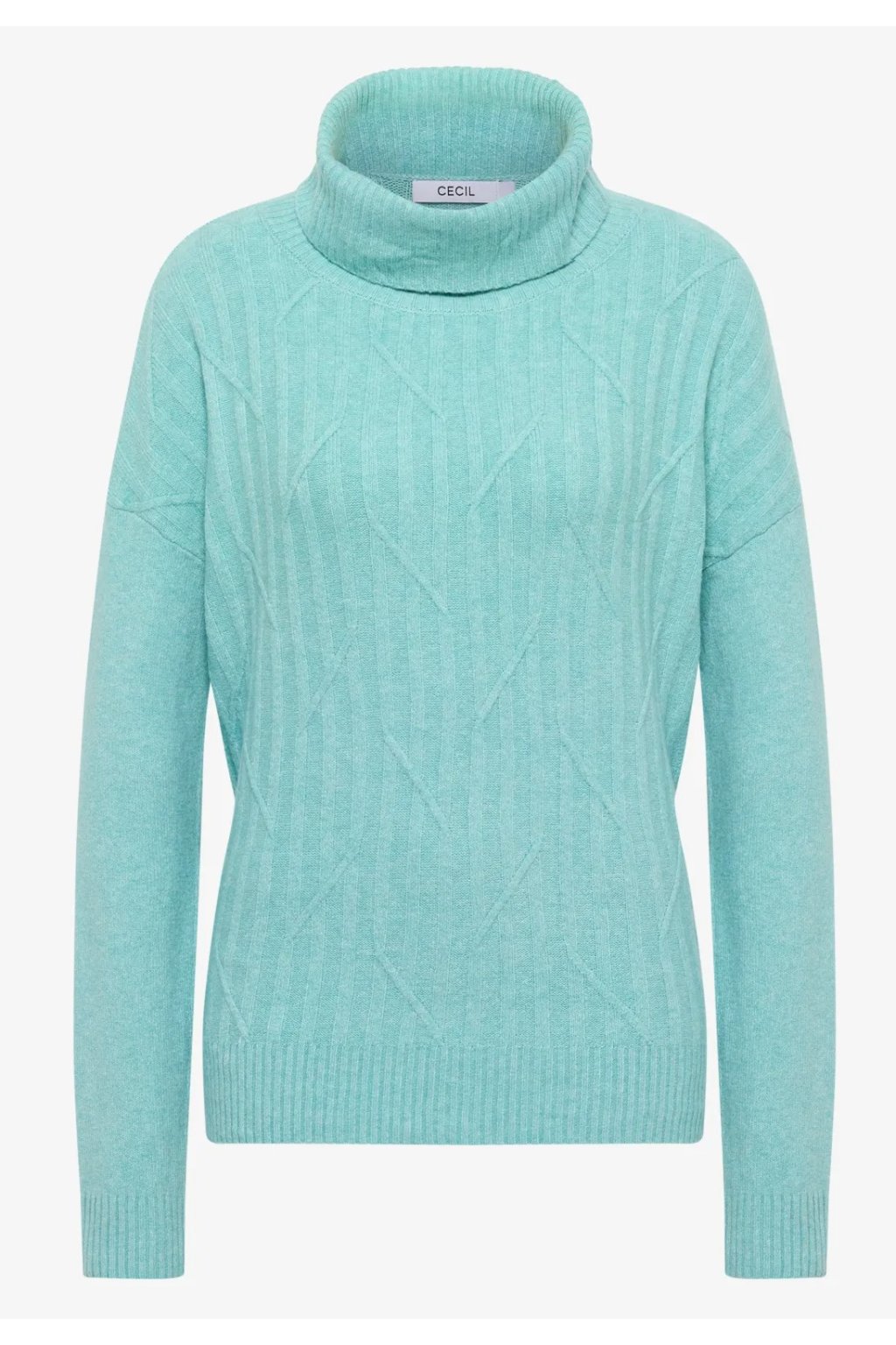 Tento dámsky rolák od CECIL zaujme svojim decentným textúrovaným vzorom a hebkým úpletom. Vysoký golier a rebrované manžety zaisťujú príjemný pocit a hrejú vás v chladných dňoch. Všestranný nevyhnutný kúsok pre štýlový zimný outfit.
