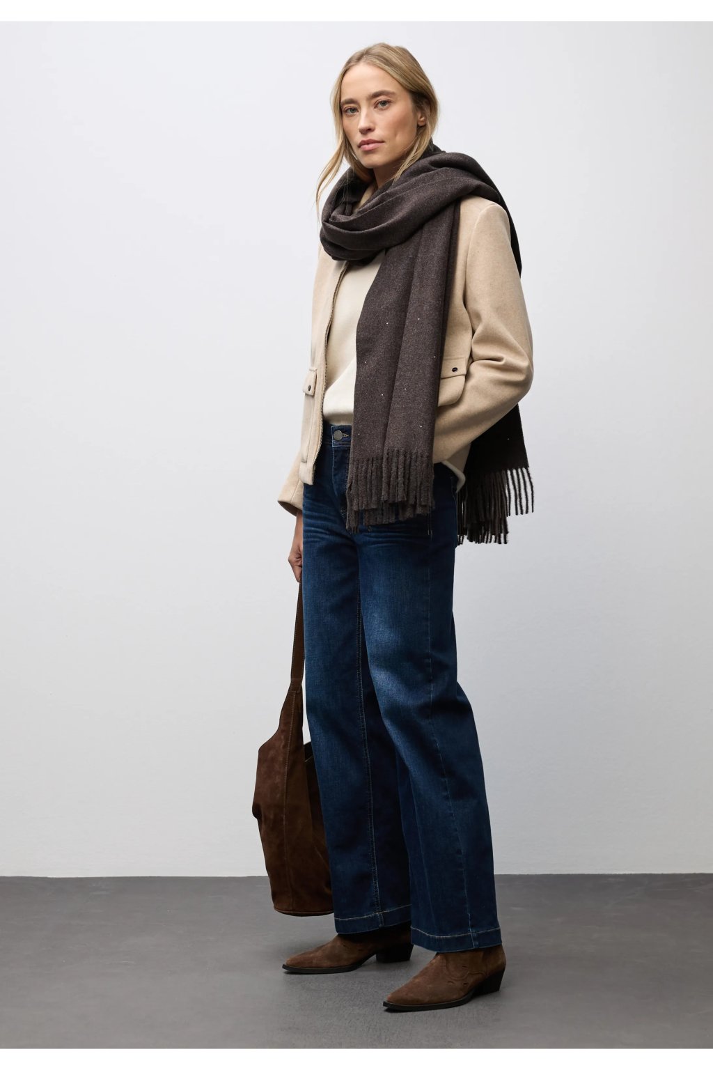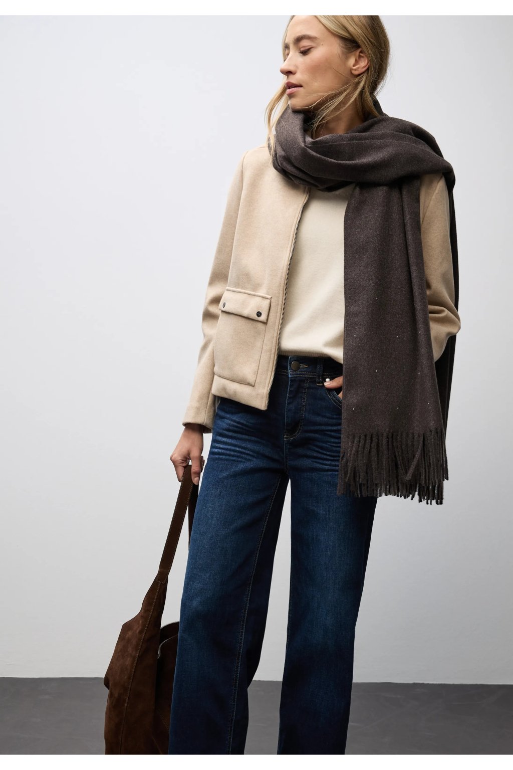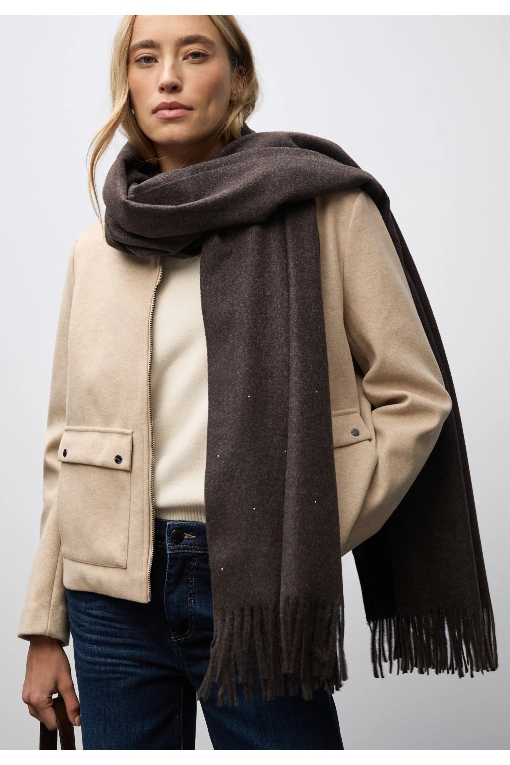 Tento dlhý dámsky šál od Street One je zdobený ozdobnými drahokamami, ktoré jej dodávajú sofistikovaný nádych. Módne strapce a príjemná, mäkká látka z nej robia perfektného spoločníka do chladných dní. Štýlový doplnok pre ženský vzhľad s nádychom lesku.