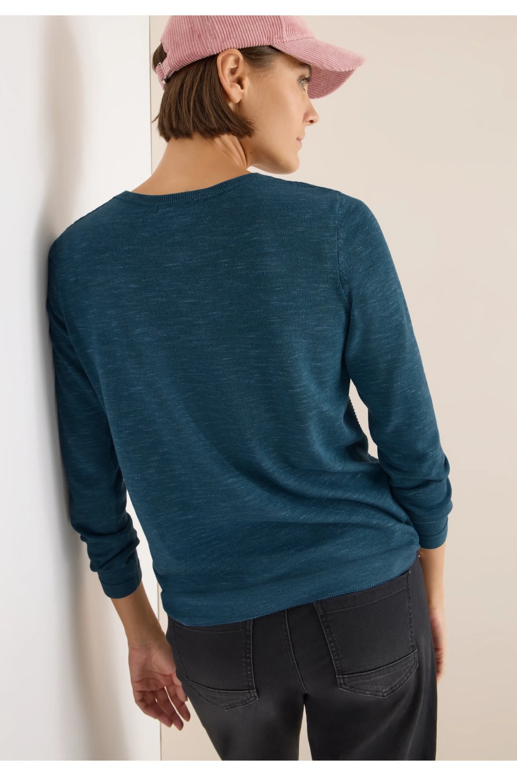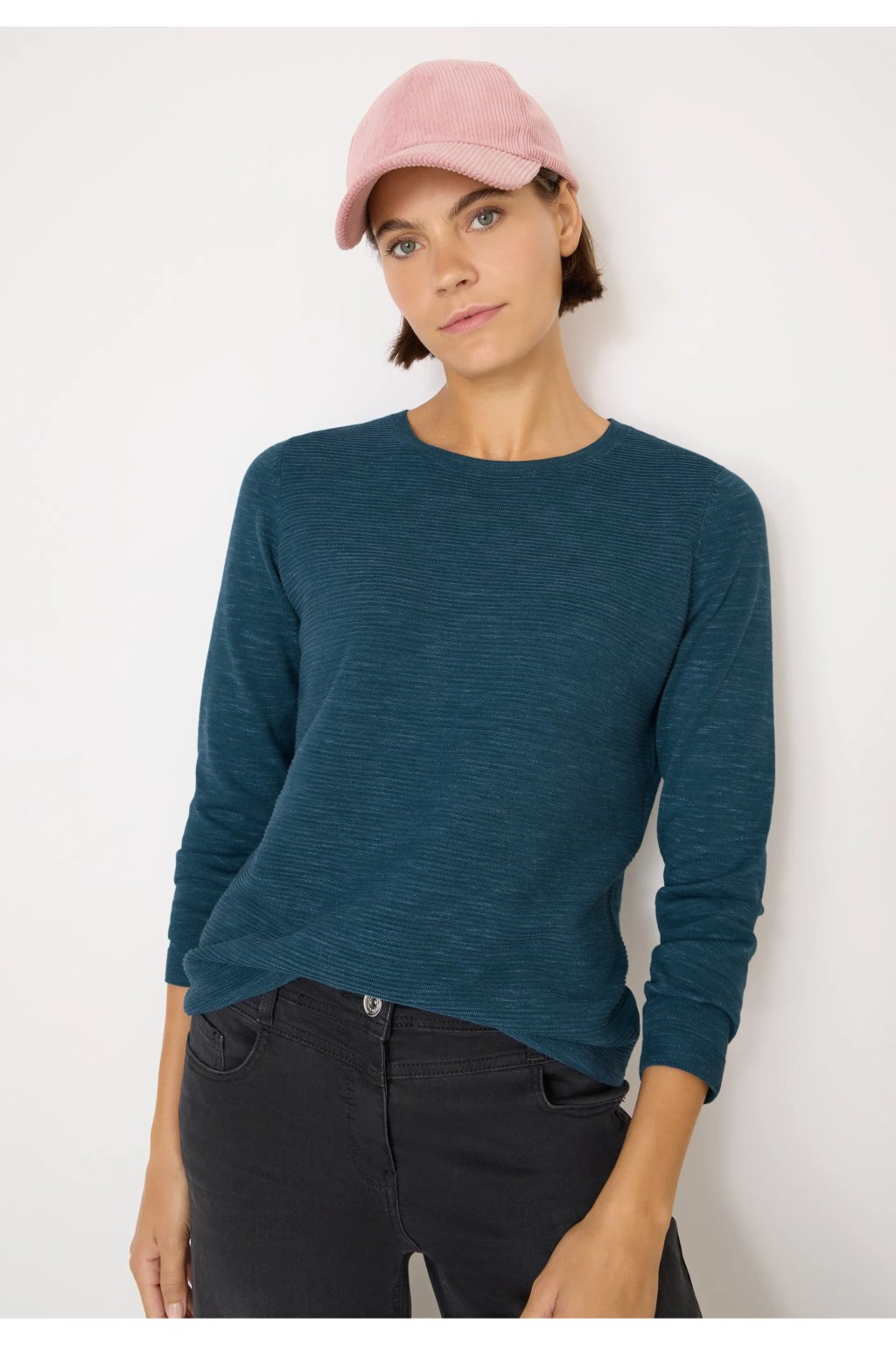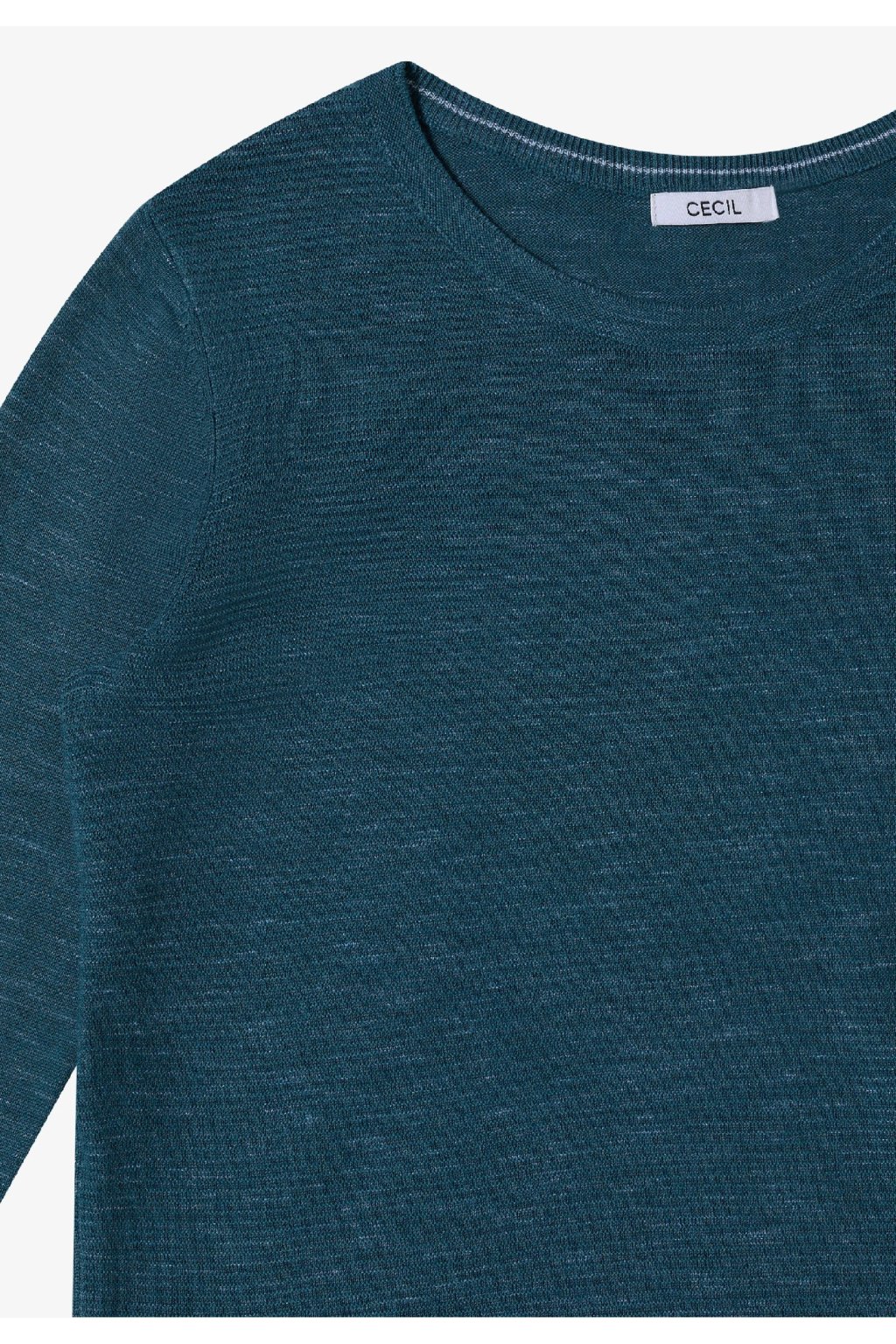 Tento textúrovaný sveter od značky CECIL pre ženy sa vyznačuje klasickým strihom a štruktúrovaným predným panelom. Okrúhly výstrih a dlhé rukávy vytvárajú nadčasový vzhľad, zatiaľ čo mäkká tkanina je príjemná na dotyk. Ideálne pre decentné každodenné outfity.