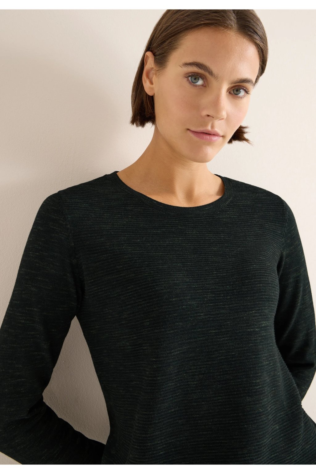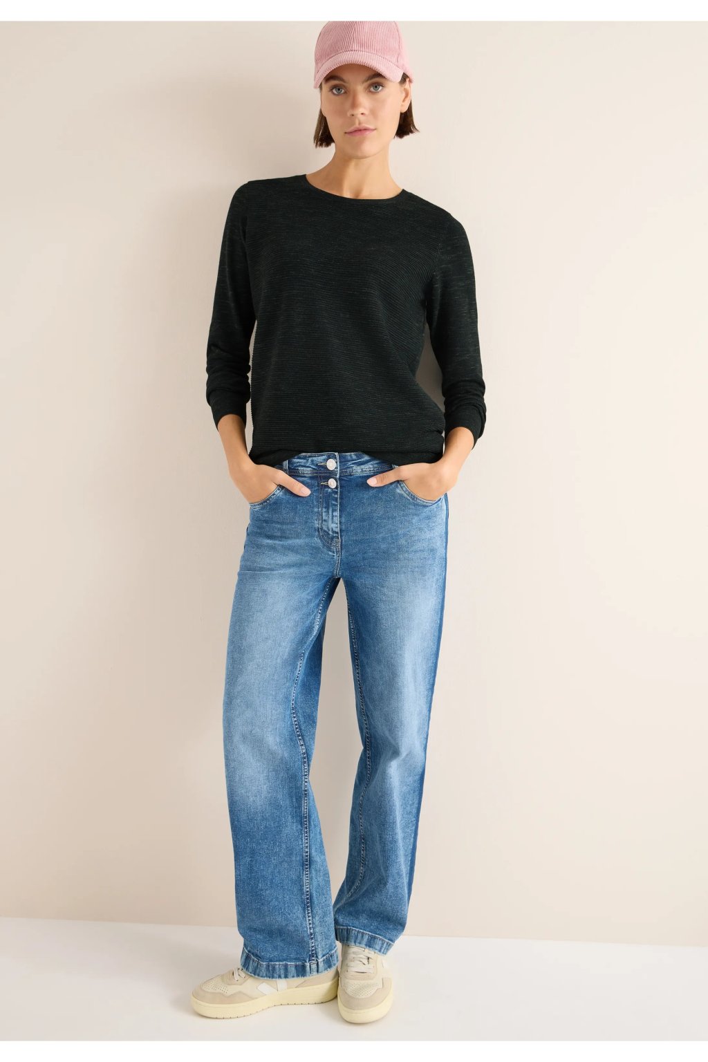 Tento textúrovaný sveter od značky CECIL pre ženy sa vyznačuje klasickým strihom a štruktúrovaným predným panelom. Okrúhly výstrih a dlhé rukávy vytvárajú nadčasový vzhľad, zatiaľ čo mäkká tkanina je príjemná na dotyk. Ideálne pre decentné každodenné outfity.
