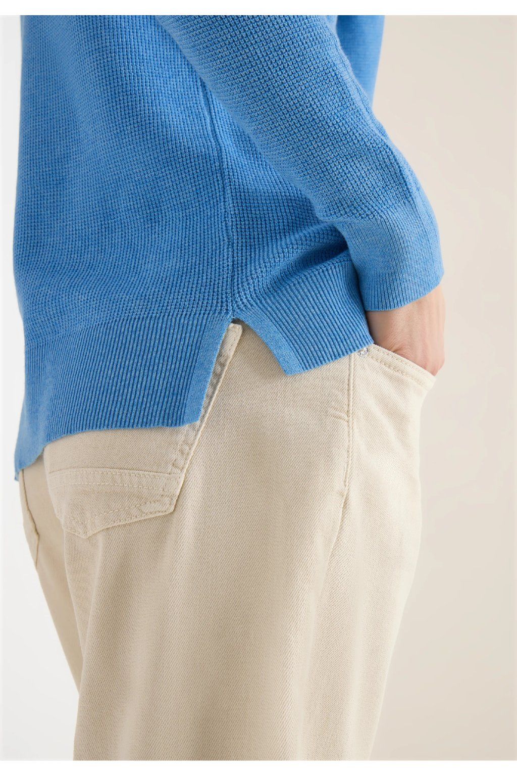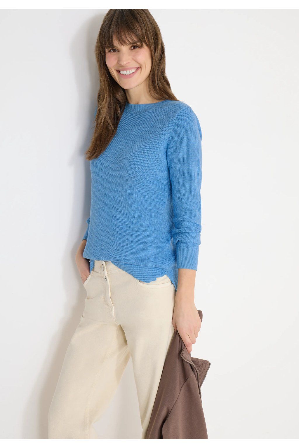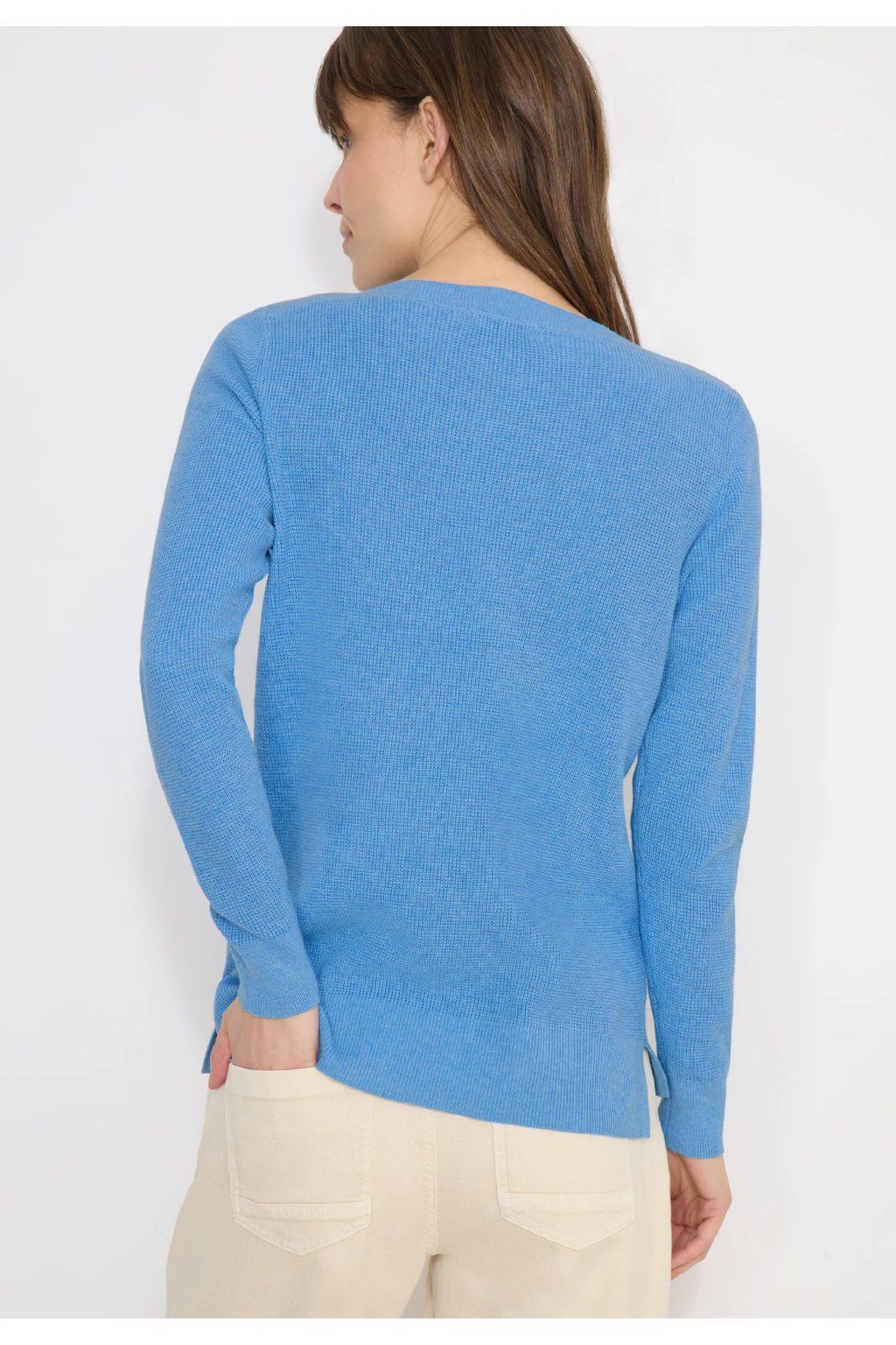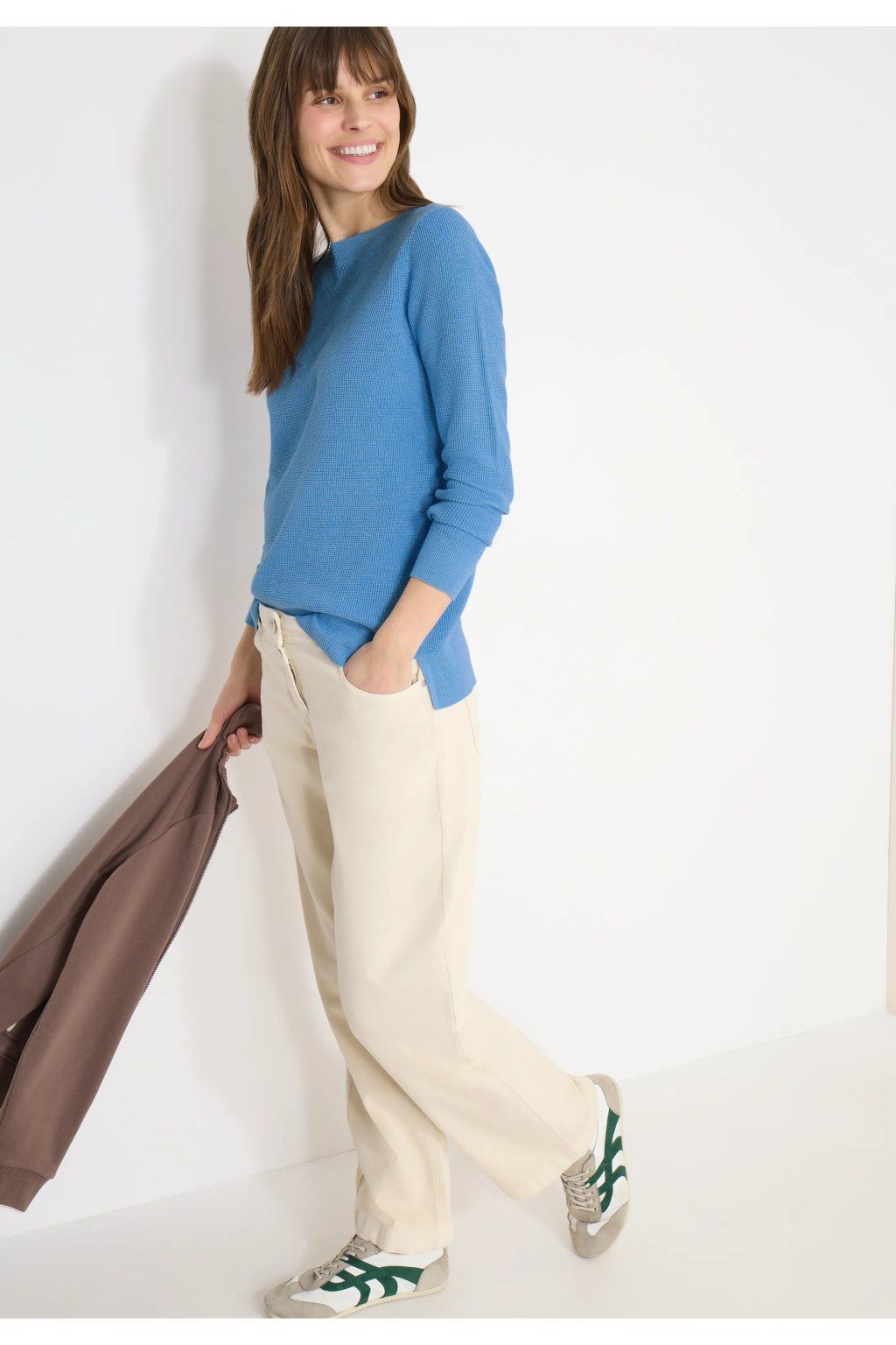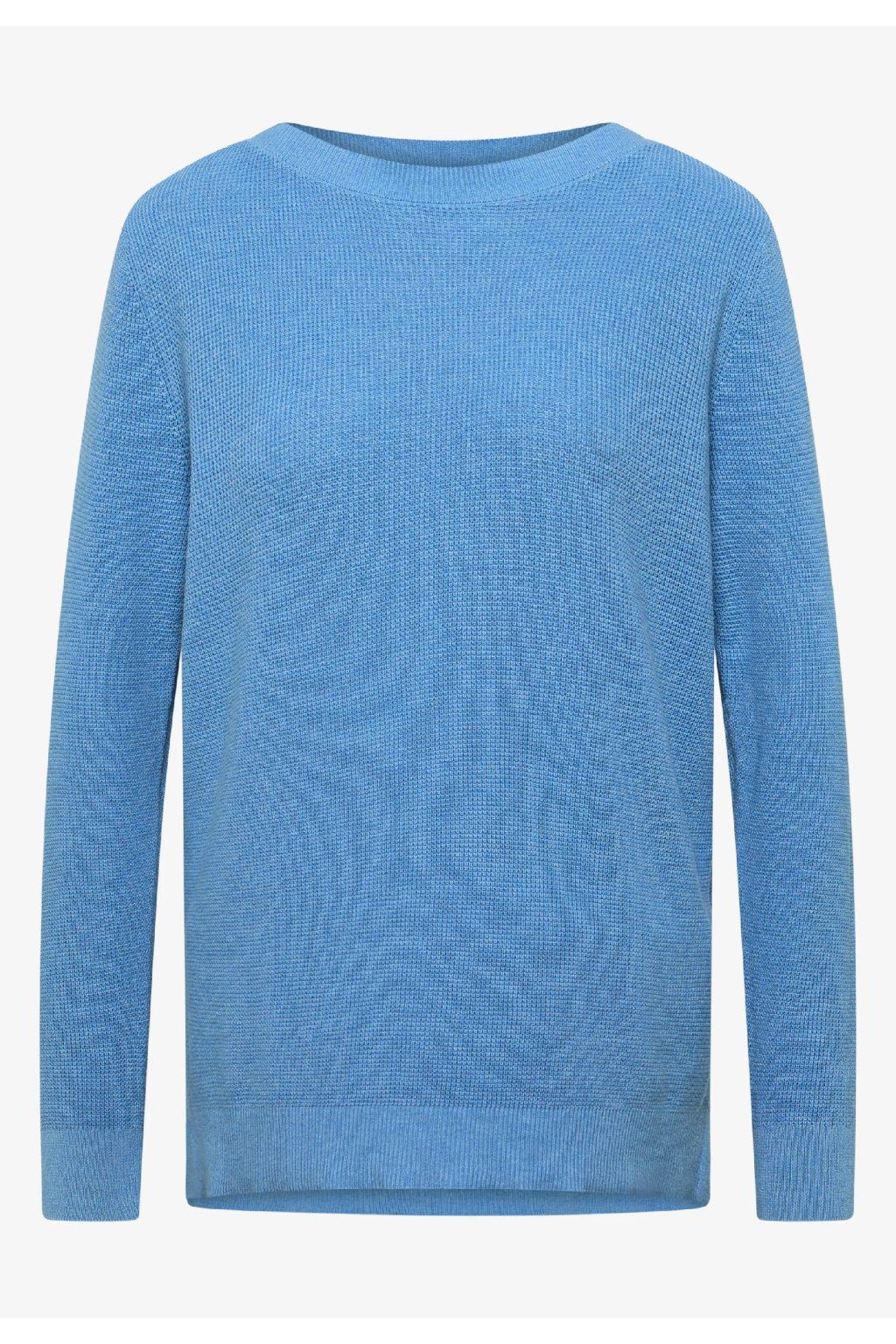 Pohodlný sveter z bavlnenej zmesi v casual štýle, ktorý si zamilujete pre jeho jednoduchosť a univerzálnosť. Má elegantný lodičkový (U) výstrih a dlhé rukávy, vďaka ktorým pôsobia nadčasovo a žensky. Príjemný materiál zaisťuje maximálny komfort pri nosení a skvele sa hodí pre každodenný outfit – perfektný k džínsom aj elegantnejším nohaviciam.