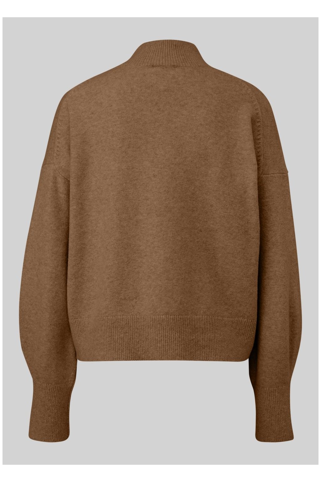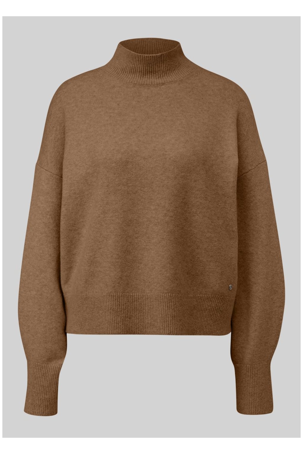 Štýlový dámsky pletený sveter so stojačikom a dlhými rukávmi je ideálnou voľbou pre chladné dni. Vďaka zmesi bavlny a vlny je príjemne mäkký, hrejivý, pružný a krásne sa prispôsobí postave. Voľnejší strih a jemný pletený vzor dodávajú ženský a nadčasový vzhľad, ktorý sa hodí na každodenné nosenie, do práce aj na voľný čas. Rebrované lemy na rukávoch aj spodnom okraji podčiarkujú pohodlný a štýlový dizajn.