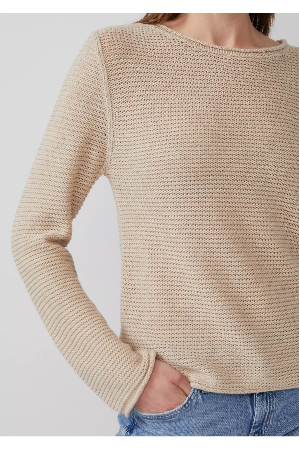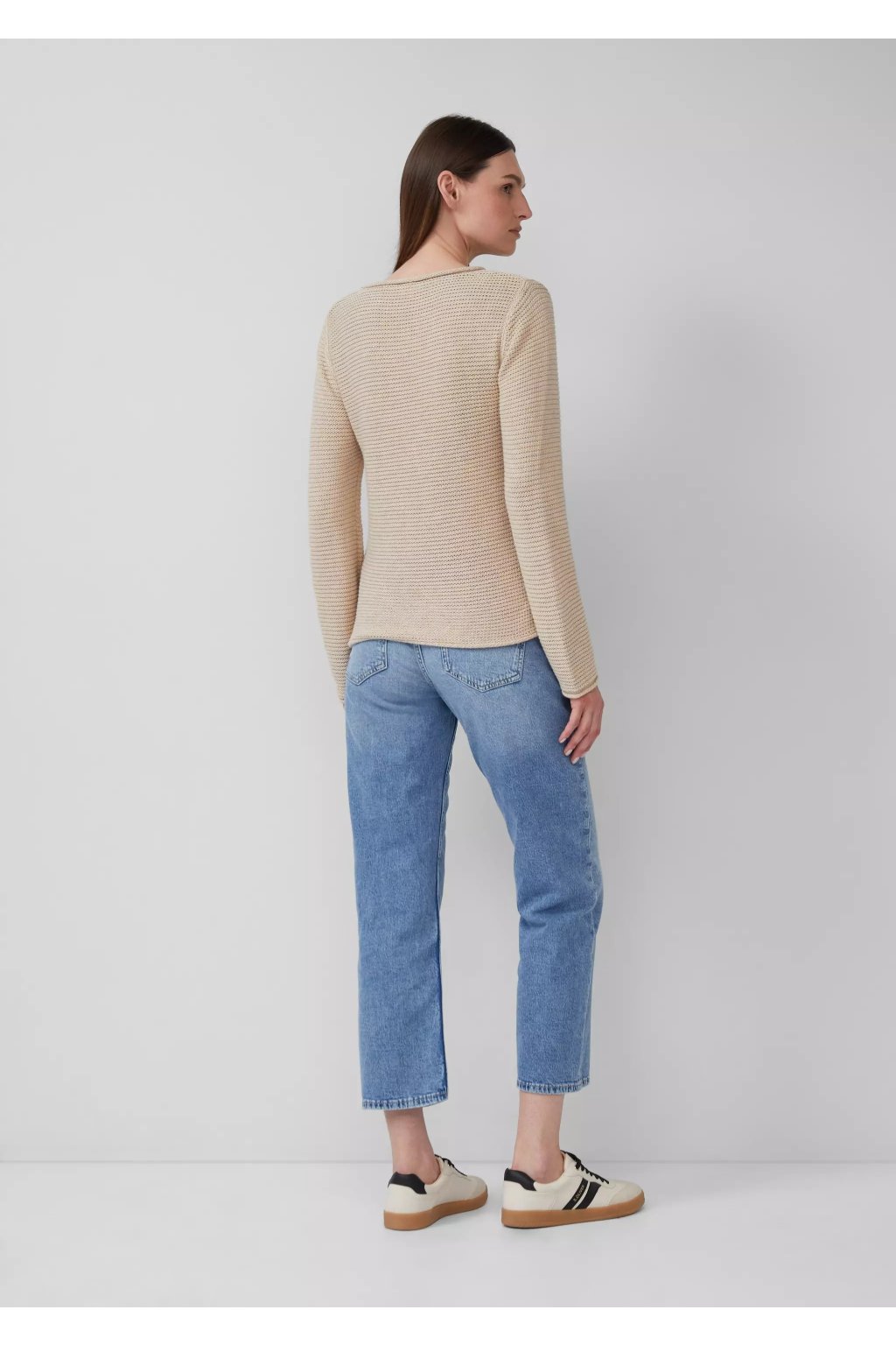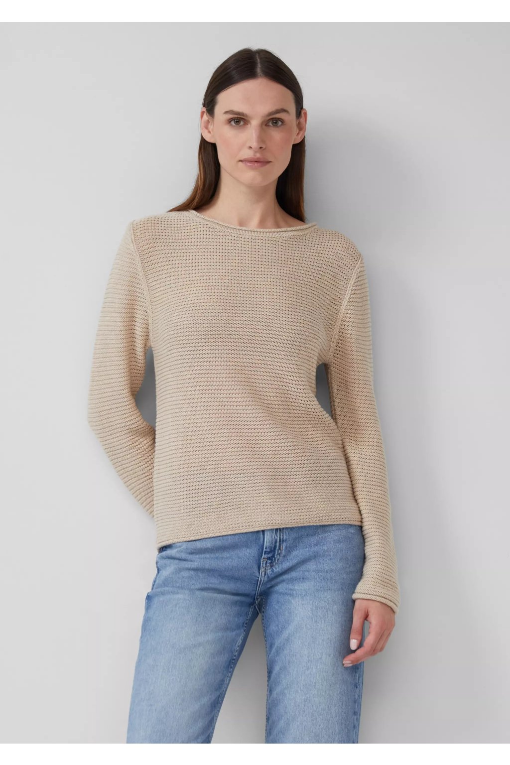 Uži si pohodlie v tomto mäkkom a ľahkom pletenom svetri s jemnou rebrovanou štruktúrou. Sveter má okrúhly výstrih a dlhé rukávy, ktoré poskytujú komfort v chladnejších dňoch. Vďaka bavlnenej zmesi je príjemný na dotyk a vzdušný, takže sa skvele hodí na voľnočasové nosenie aj domácu pohodu.