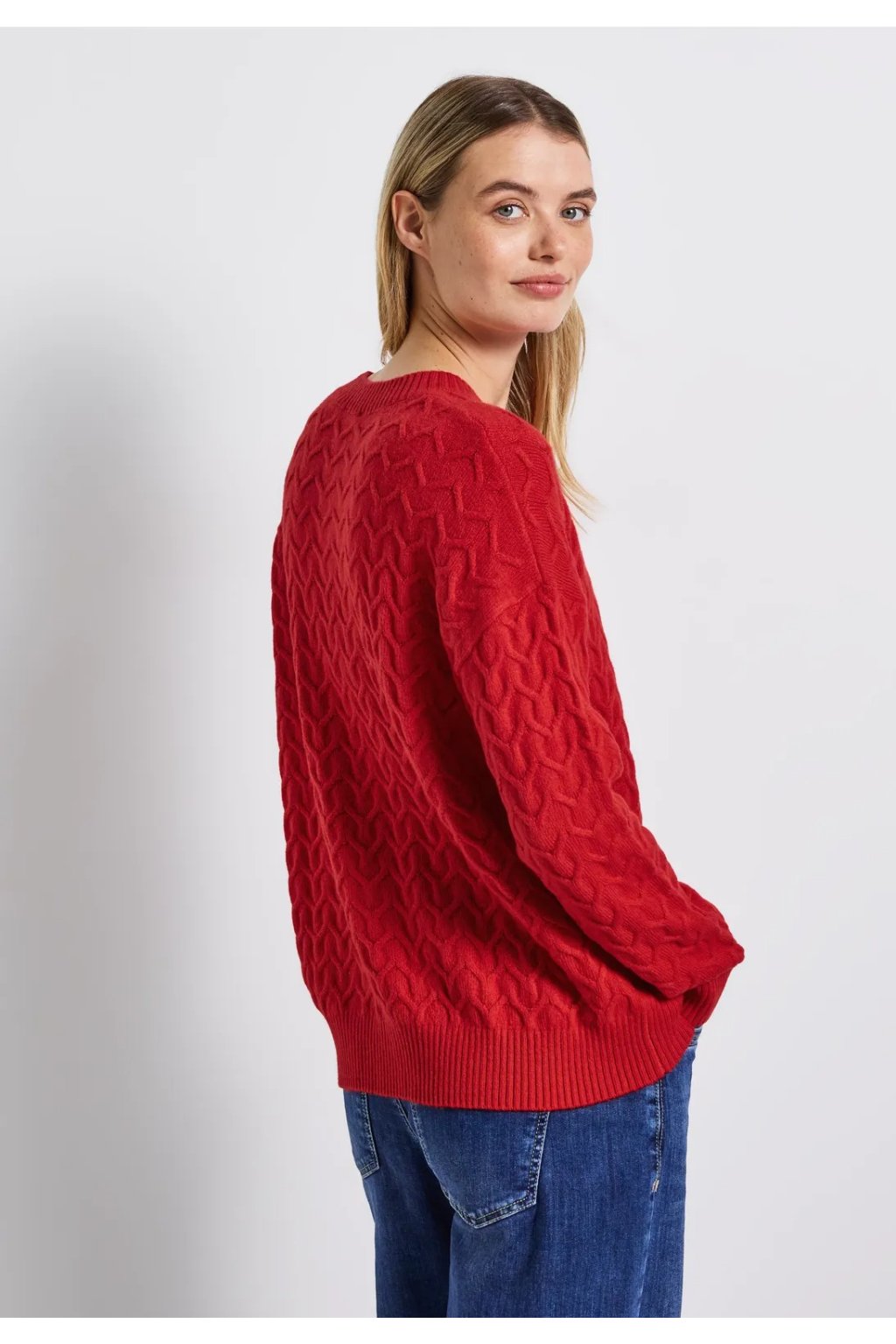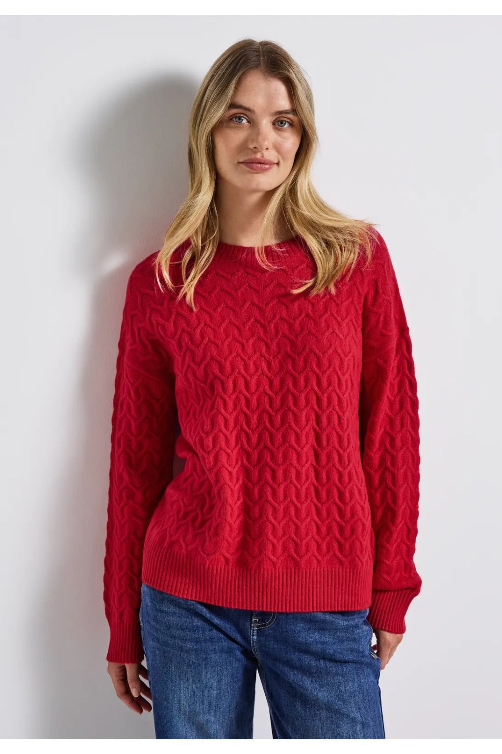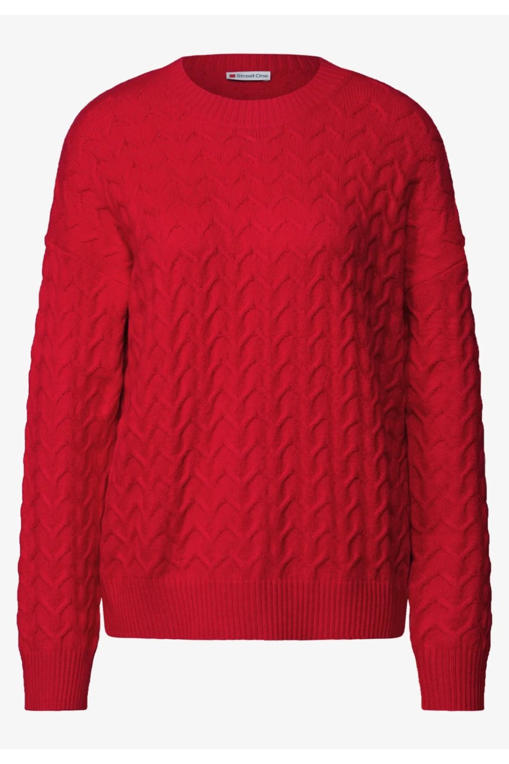 Vďaka jemnému texturovanému vzoru vnesie tento dámsky sveter od Street One do vášho šatníka módnu sofistikovanosť. Klasický okrúhly výstrih a príjemný materiál zaisťujú pohodlné nosenie. Ideálna pre štýlové každodenné outfity, v ktorých sa budete cítiť dobre.