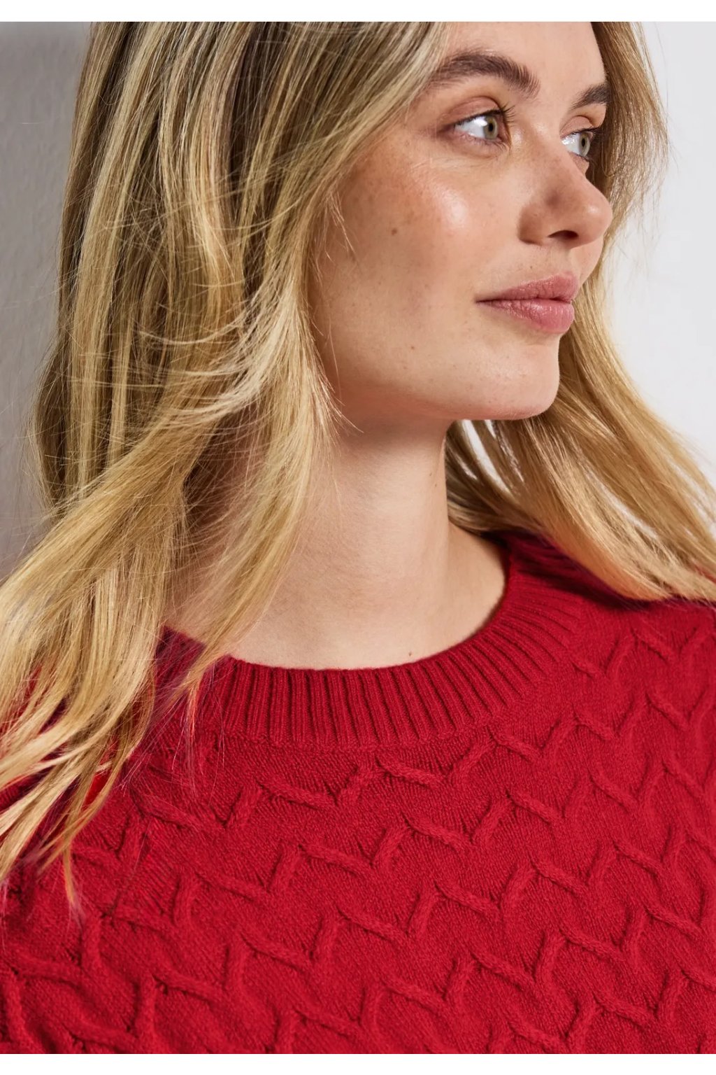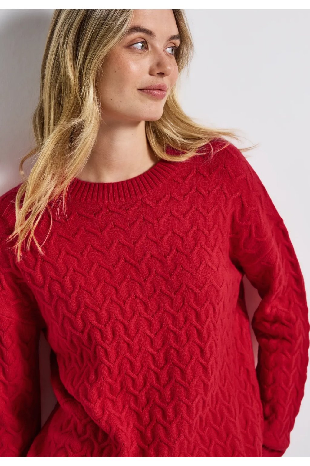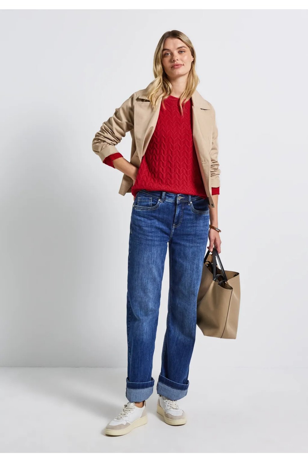 Vďaka jemnému texturovanému vzoru vnesie tento dámsky sveter od Street One do vášho šatníka módnu sofistikovanosť. Klasický okrúhly výstrih a príjemný materiál zaisťujú pohodlné nosenie. Ideálna pre štýlové každodenné outfity, v ktorých sa budete cítiť dobre.