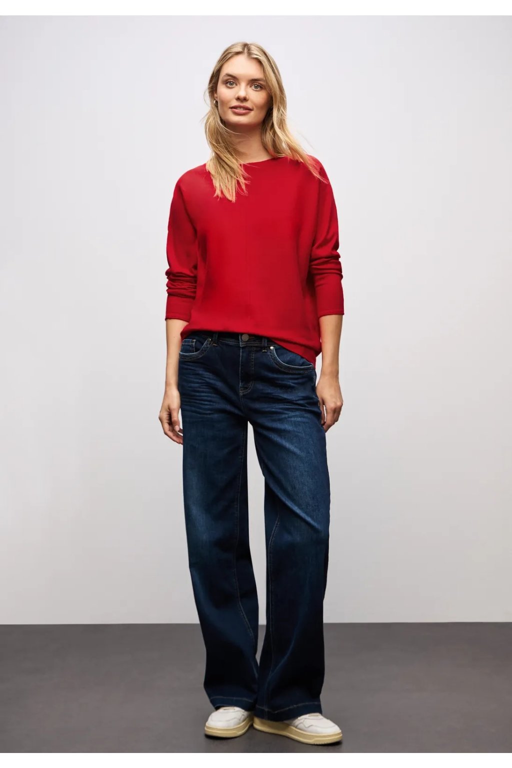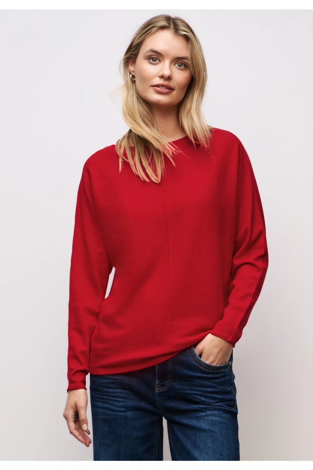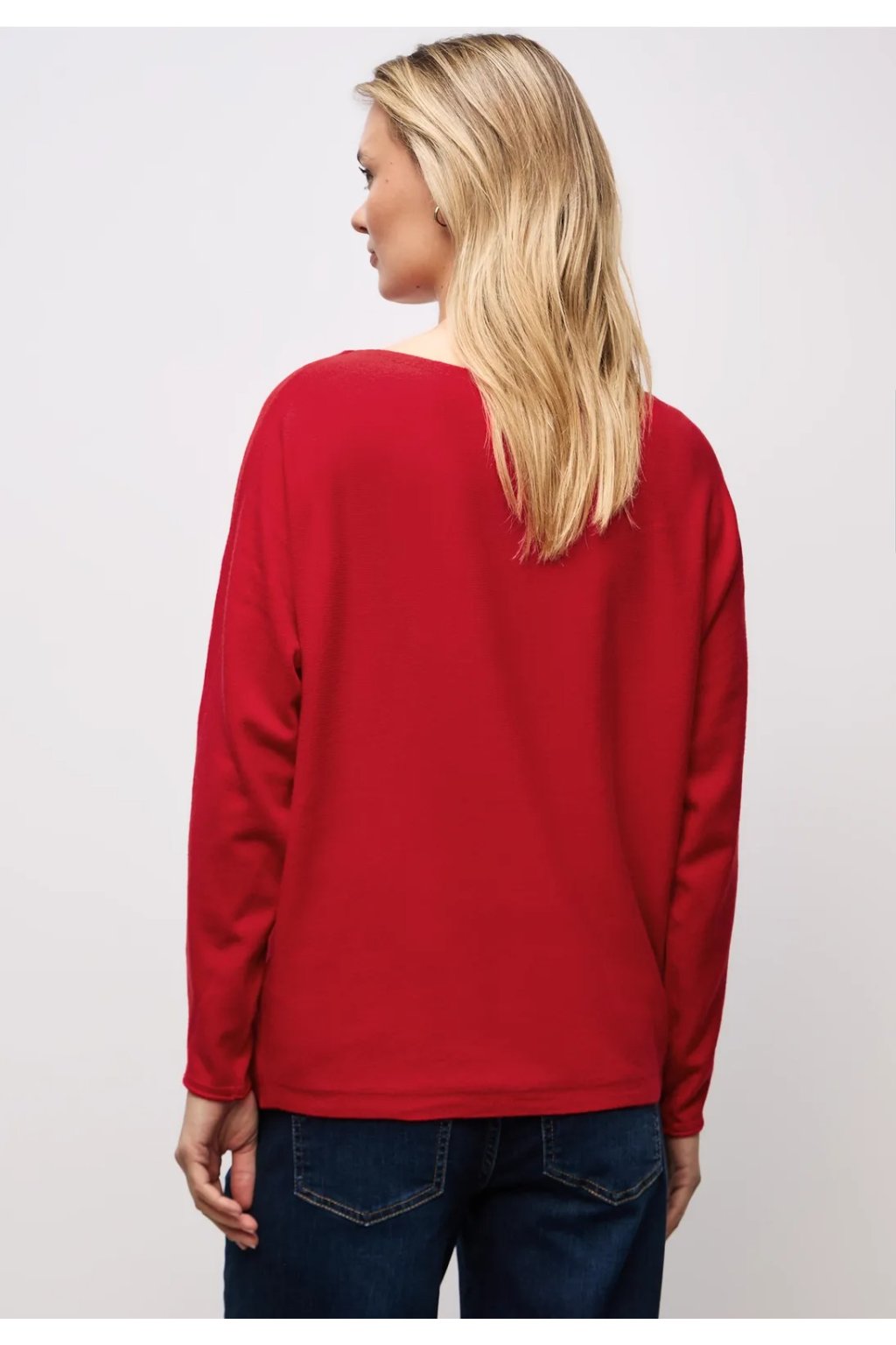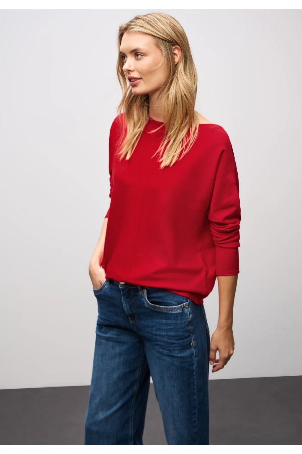 Základný sveter Dolman od Street One pre ženy zaujme svojim uvoľneným strihom a pohodlným pocitom. Lodičkový výstrih a voľné rukávy vytvárajú ležérnu siluetu. Ideálny základný kúsok na pohodlný a štýlový ležérny vzhľad.