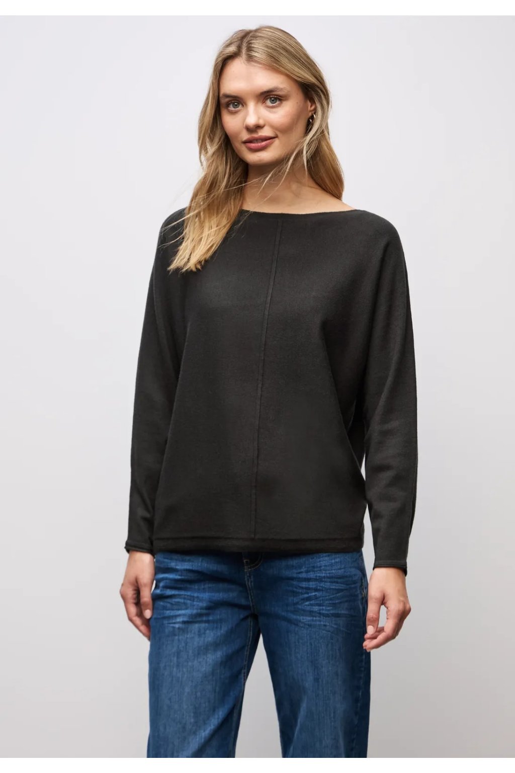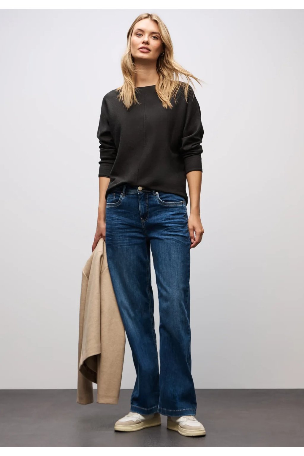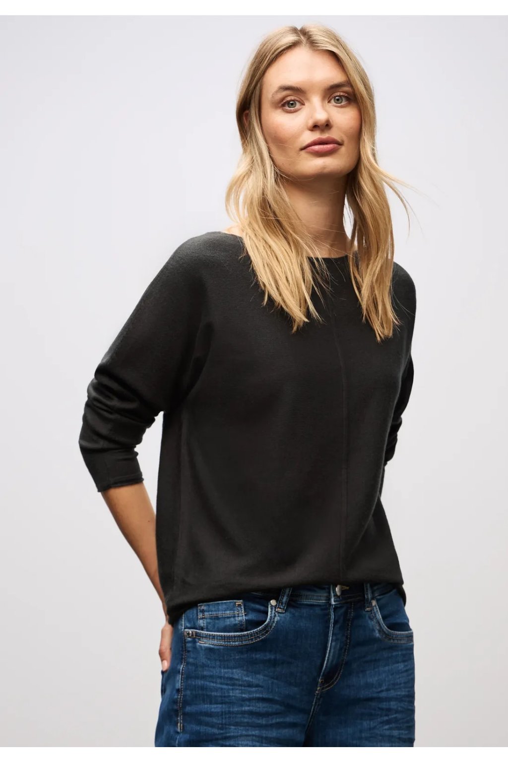 Základný sveter Dolman od Street One pre ženy zaujme svojim uvoľneným strihom a pohodlným pocitom. Lodičkový výstrih a voľné rukávy vytvárajú ležérnu siluetu. Ideálny základný kúsok na pohodlný a štýlový ležérny vzhľad.