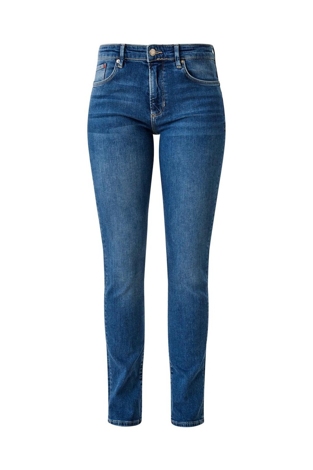 Džínsy, ktoré podčiarknu vašu postavu a zároveň vám zaistia maximálny komfort. Slim fit strih so stredným pásom a úzkymi nohavicami vytvára lichotivú siluetu, zatiaľ čo elastická bavlna sa dokonale prispôsobí vášmu pohybu. Praktický 5-vreckový dizajn, zapínanie na gombík so skrytým zipsom a jemné opranie látky dodávajú džínsom moderný vzhľad. Vďaka univerzálnemu štýlu sa hodí ako k ležérnemu outfitu s teniskami, tak aj k elegantnej kombinácii s členkovými topánkami a blúzkou.