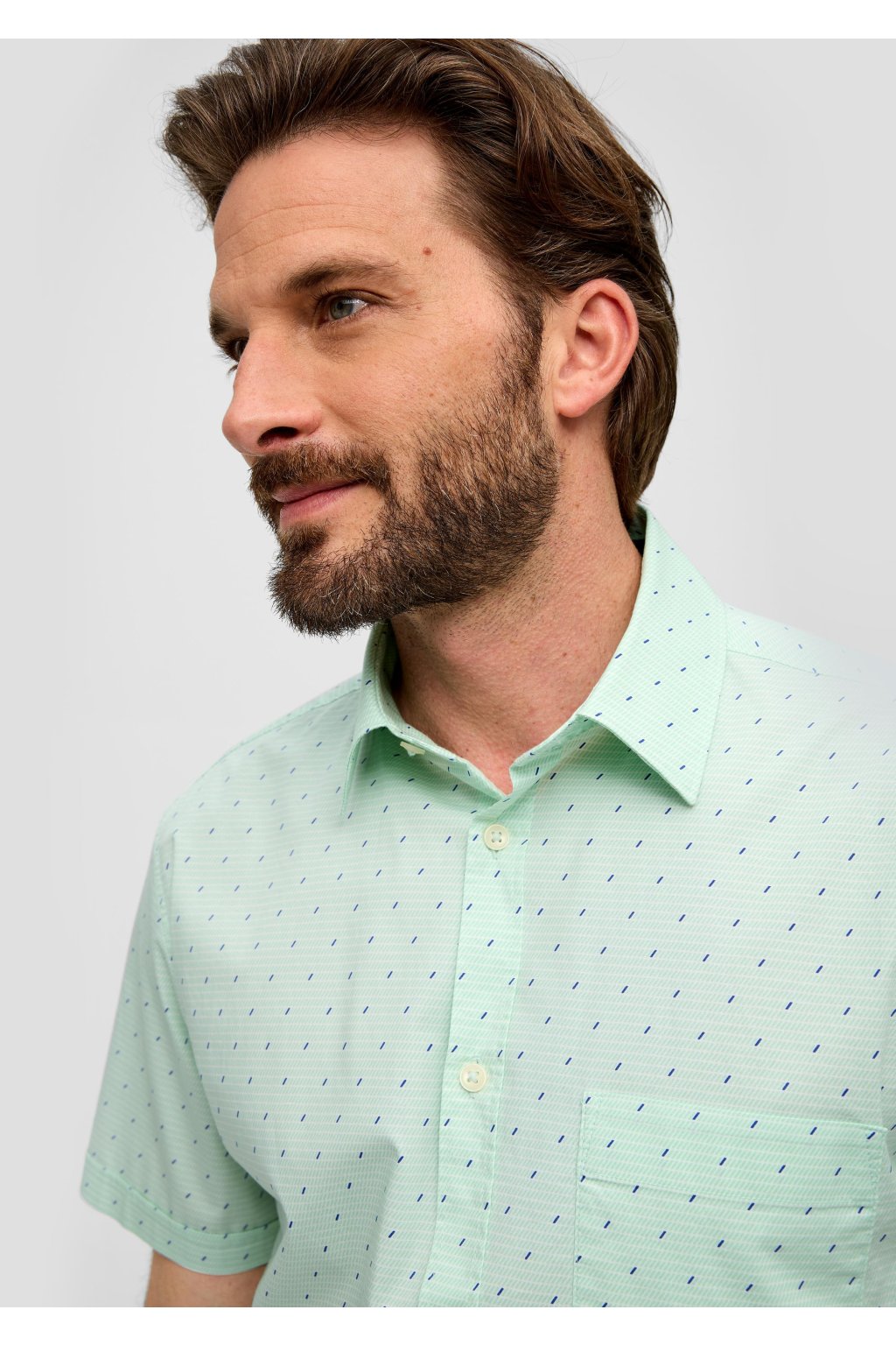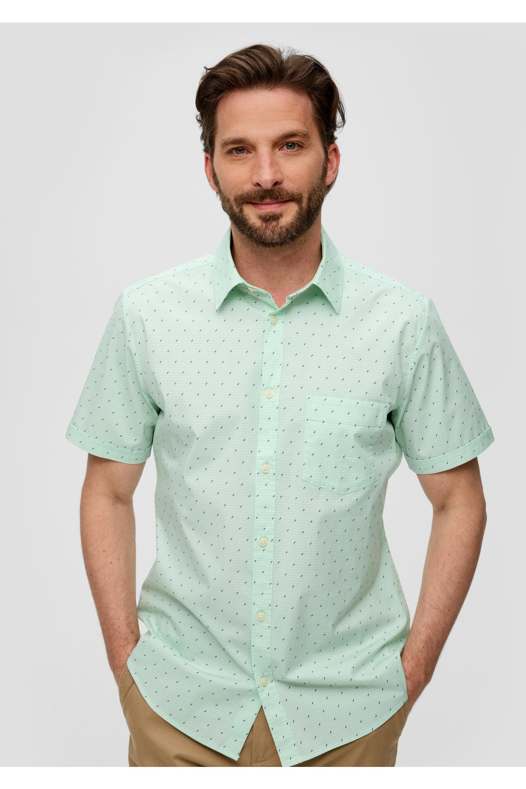 Štýlová a zároveň pohodlná - táto pánska košeľa s krátkym rukávom je ideálnou voľbou pre teplejšie dni Ľahký a priedušný materiál zaisťuje maximálny komfort, či už ste v práci, na schôdzke alebo na prechádzke mestom.