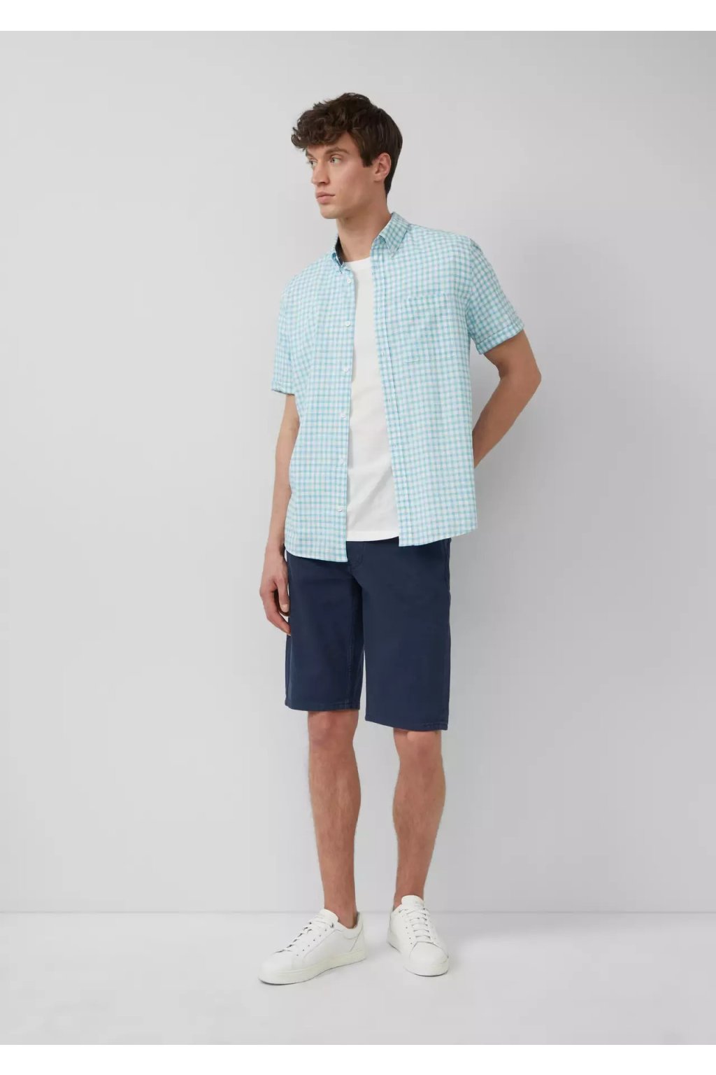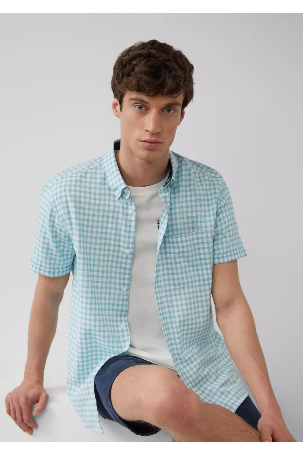 Táto kockovaná košeľa s krátkym rukávom je vaša voľnočasová voľba. Je ideálny na víkendové brunche alebo improvizované stretnutia, vďaka uvoľnenému strihu a mäkkej zmesi bavlny a viskózy sa v nej budete cítiť pohodlne po celý deň. Zapnite ju na gombíky alebo ju nechajte rozopnutú.