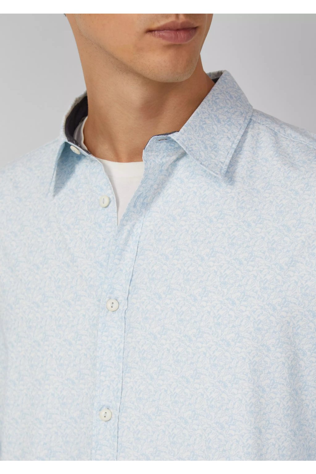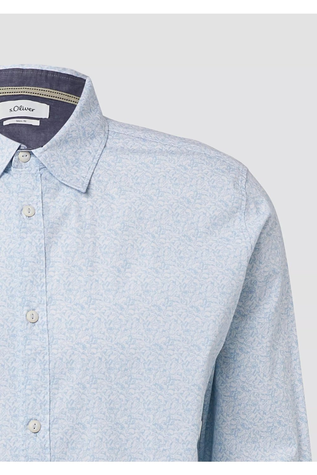 Máte chuť na nevšednú zmenu klasického štýlu? Táto bavlnená košeľa úzkeho strihu sa pýši pútavou celoplošnou potlačou. Je ideálny na bežné vychádzky alebo na dovolenku, je ľahká a má očarujúce detaily, ako je ozdobné prešívanie a gombíky. Ste pripravení zaujať?