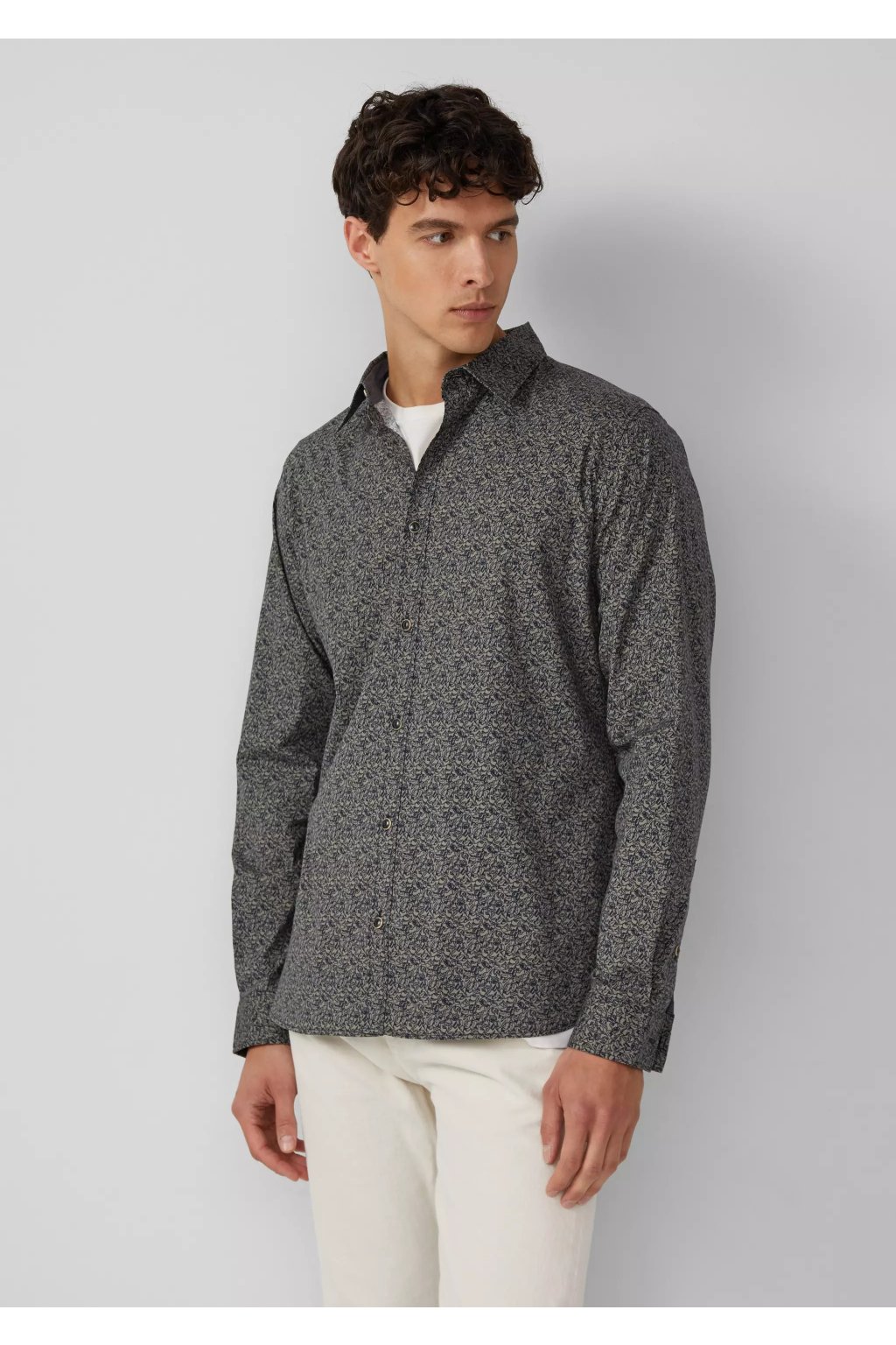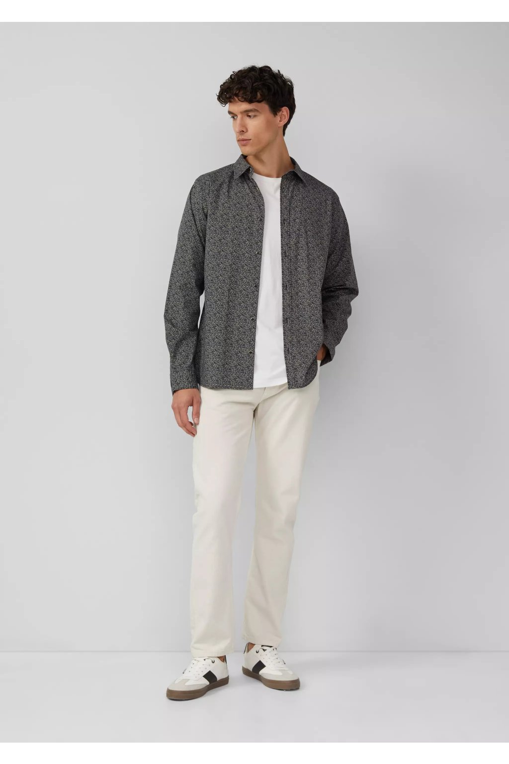 Máte chuť na nevšednú zmenu klasického štýlu? Táto bavlnená košeľa úzkeho strihu sa pýši pútavou celoplošnou potlačou. Je ideálny na bežné vychádzky alebo na dovolenku, je ľahká a má očarujúce detaily, ako je ozdobné prešívanie a gombíky. Ste pripravení zaujať?