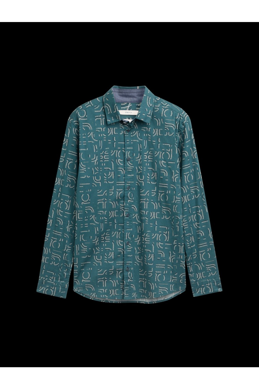 Pánska košeľa s dlhým rukávom a štýlovým vzorom, ktorá dodá outfitu osobitý vzhľad. Je vyrobená z príjemného materiálu zaisťujúceho komfort po celý deň. Klasický golier a zapínanie na gombíky podčiarkujú nadčasový charakter košele, zatiaľ čo vzorovaný dizajn ju oživuje a robí ideálnou voľbou ako do práce, tak na voľný čas. Skvele sa kombinuje s džínsami aj chinos nohavicami pre upravený, moderný look.