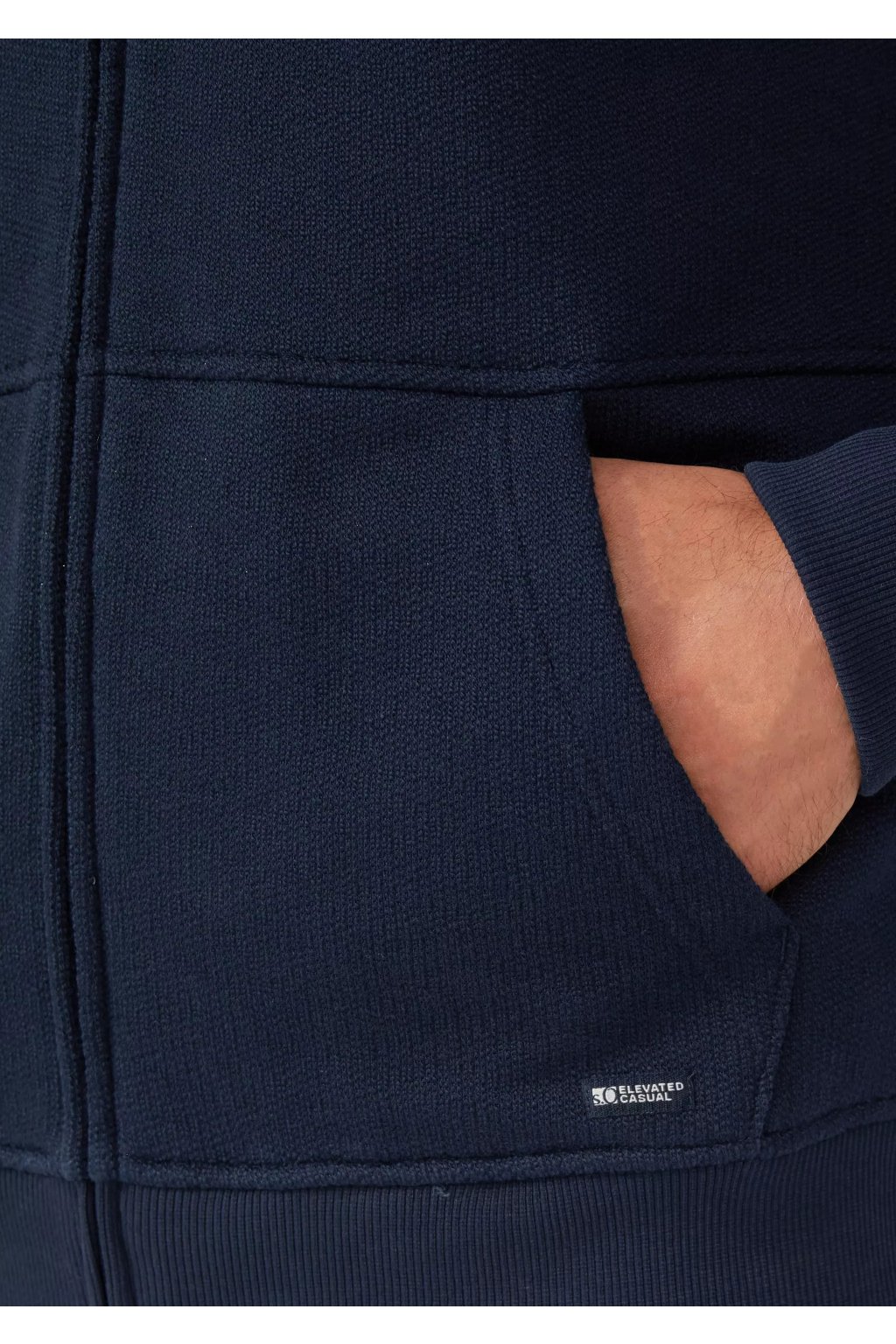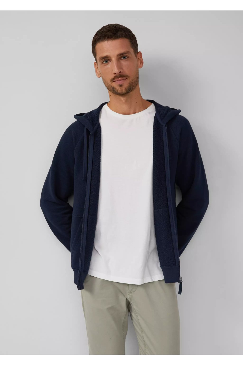 Objavte príjemné pohodlie v tejto štruktúrovanej mikinovej bunde. Vďaka pevnej kapucni, raglánovým rukávom a klokaniu vrecku je ideálny na bežné výlety. Rebrované manžety a spodný lem dodajú vášmu každodennému vzhľadu štýlový nádych.