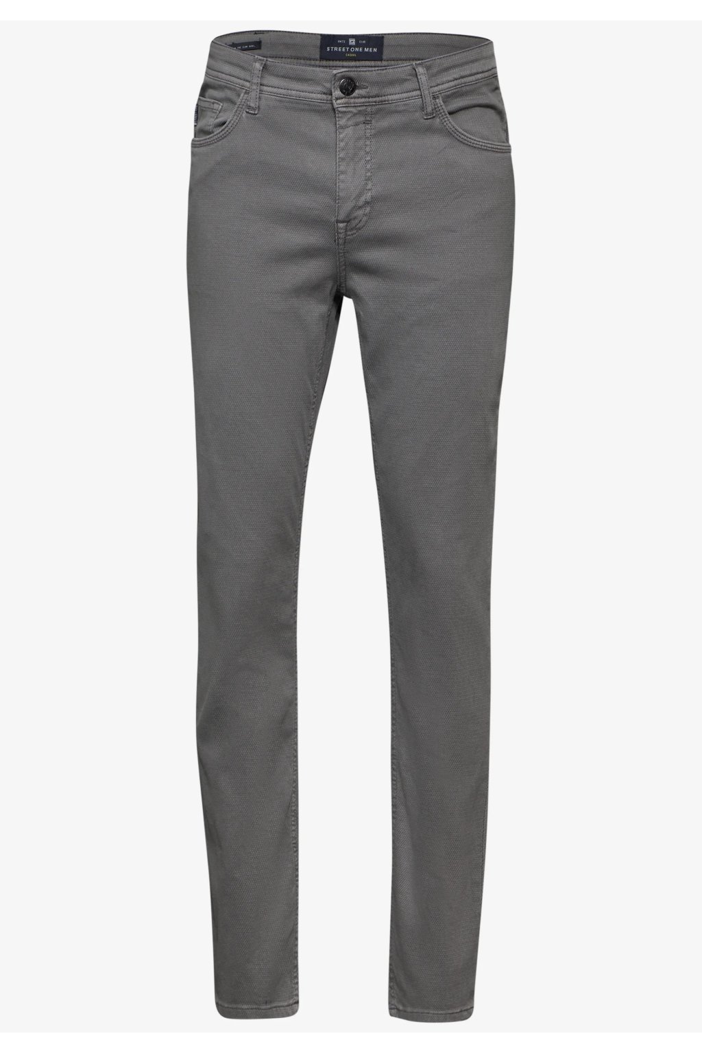 Štruktúrované nohavice Street One MEN ponúkajú moderný vzhľad a vysoký komfort nosenia so štíhlymi nohavicami. Zmes bavlny a dizajn s 5 vreckami robia zo slim fit nohavíc ideálneho spoločníka na každú príležitosť.