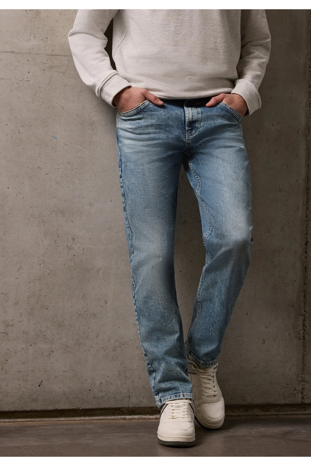 Pánske džínsy Street One s rovnými nohavicami v surferskom štýle ponúkajú uvoľnený vzhľad. Regular strih a rovné nohavice zaisťujú pohodlné nosenie, zatiaľ čo stredný pás a 5 vreciek dodávajú klasické detaily. Modré pranie a zmes bavlny s pridanou strečovou úpravou robí tento denim pohodlným a všestranným.