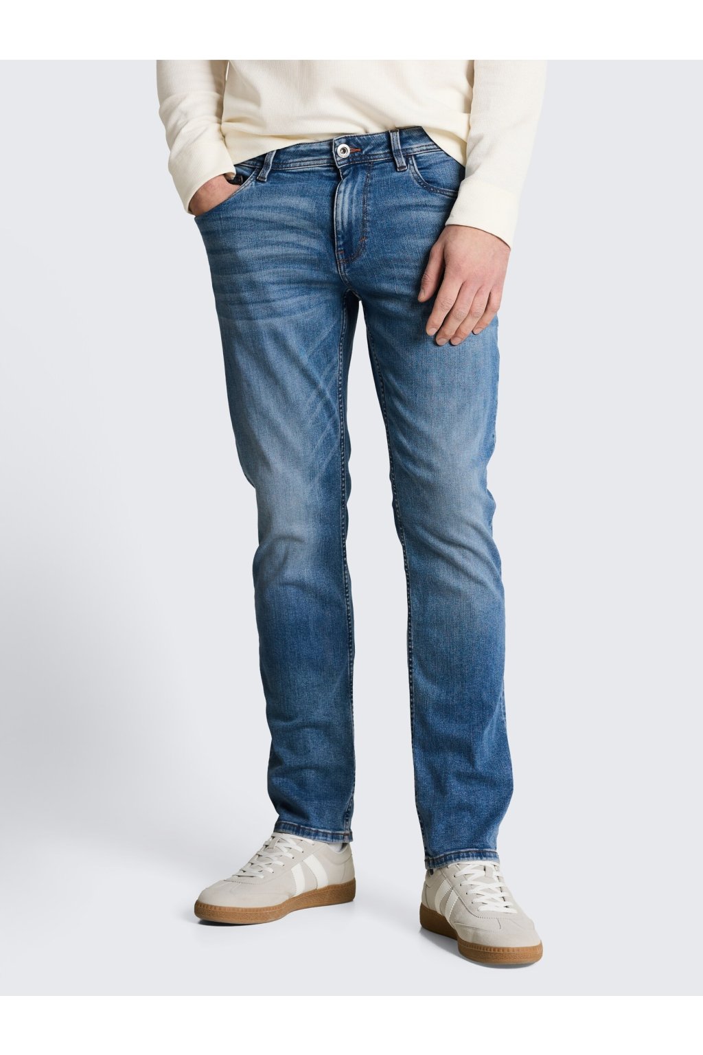 Pánske džínsy v modernom svetle modrom denime zaujmú pohodlným strihom a nadčasovým vzhľadom. Kvalitná džínsovina s jemným vyšúchaním dodáva nohaviciam ležérny charakter, ktorý sa hodí na každodenné nosenie. Klasické zapínanie na zips a gombík spolu s praktickými vreckami zaisťujú funkčnosť aj komfort. Džínsy sa ľahko kombinujú s tričkom, mikinou aj košeľou a stanú sa spoľahlivým základom voľnočasového outfitu.