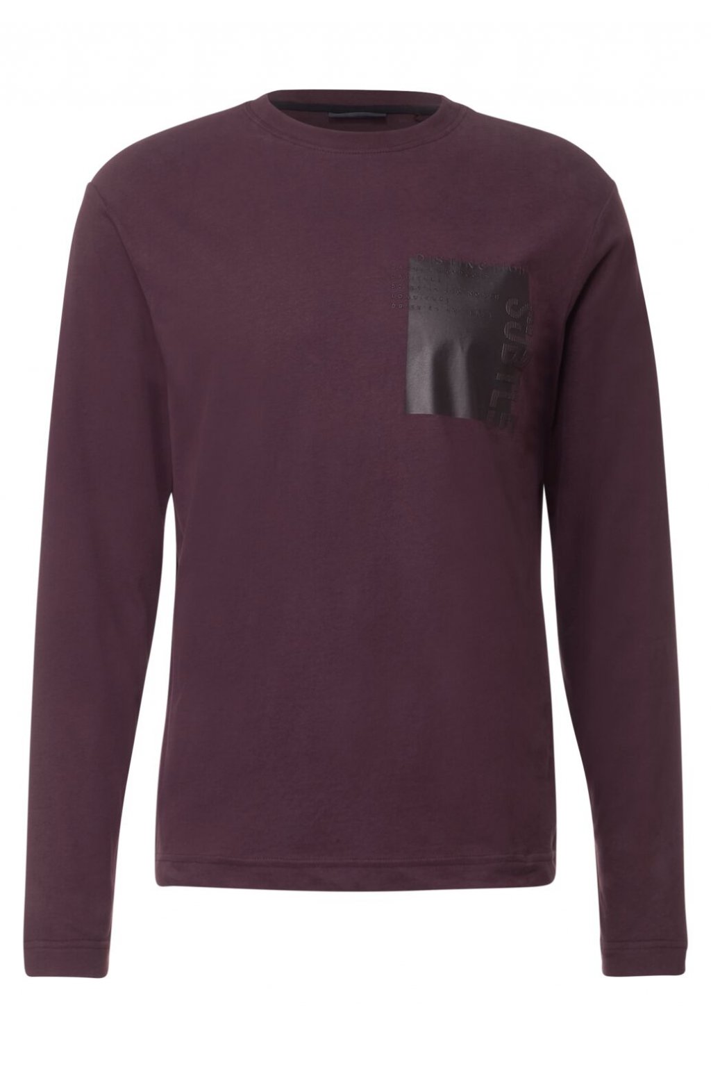 Pánske tričko značky Street One MEN s dlhým rukávom z bavlny s výstrihom a ozdobnou potlačou na hrudi ponúka pohodlie a štýl.