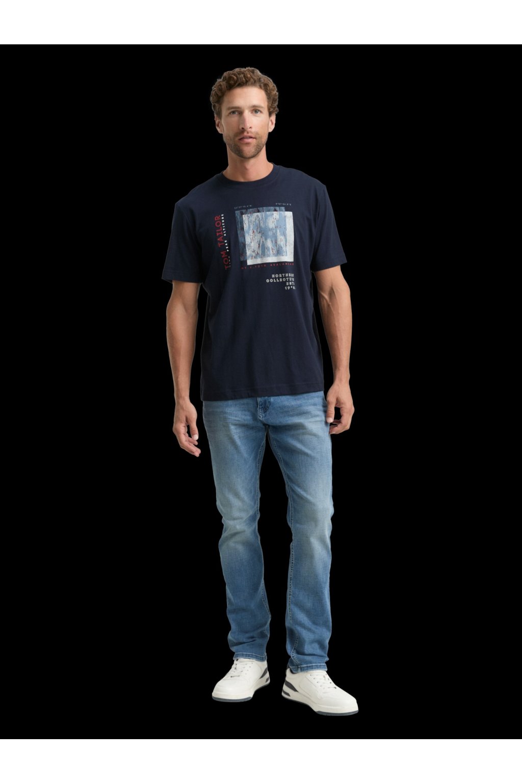 Štýlové pánske tričko Tom Tailor v tmavo modrej farbe zaujme modernou grafickou potlačou na hrudi a čistým casual dizajnom, ktorý sa ľahko kombinuje s džínsami aj voľnočasovými nohavicami. Klasický rovný strih s krátkymi rukávmi a okrúhlym výstrihom zaisťuje pohodlné nosenie, zatiaľ čo príjemný bavlnený materiál je priedušný a vhodný na každodenné použitie. Ideálna voľba pre mužov, ktorí hľadajú nadčasový štýl s jemným módnym akcentom.